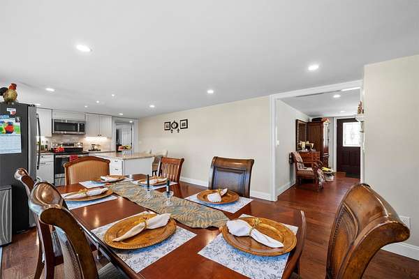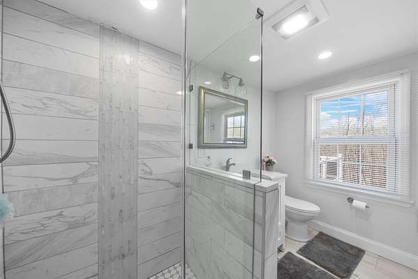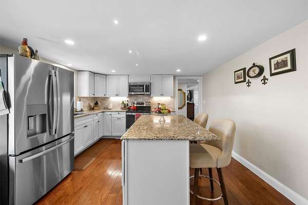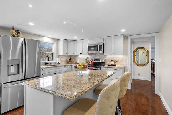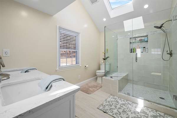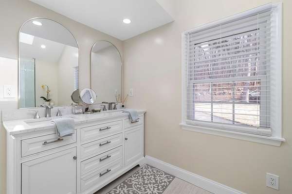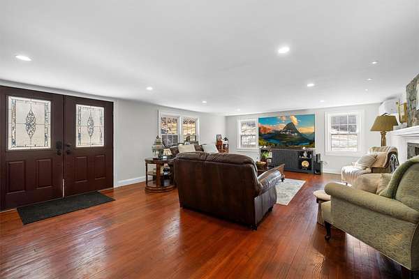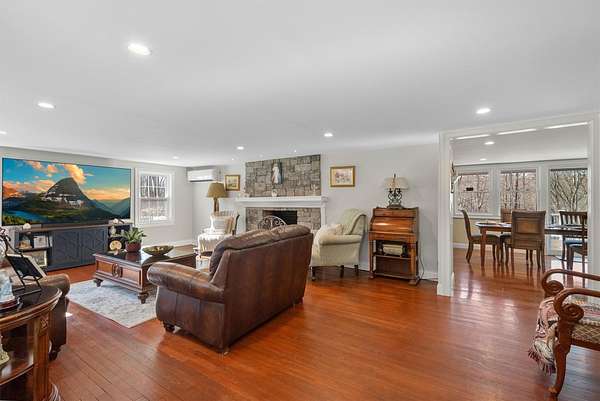 This expansive 3,000+ sq. ft. home has been renovated throughout and offers plenty of space for everyone! Step through the new double front doors into a bright and airy living room featuring beautiful hardwood floors and a charming brick fireplace. The first floor includes a mudroom, dining area, kitchen, three oversized bedrooms, and two full bathrooms, with the primary bath newly renovated and featuring a skylight.
