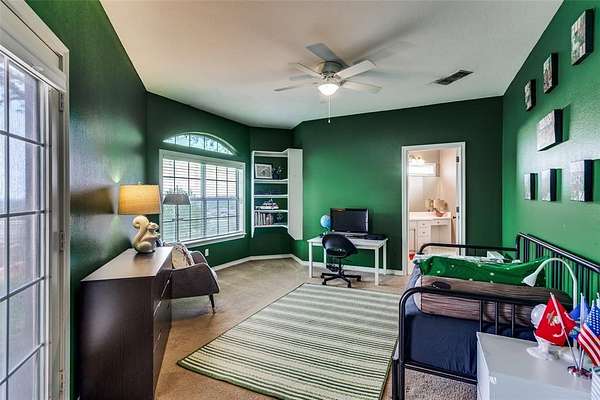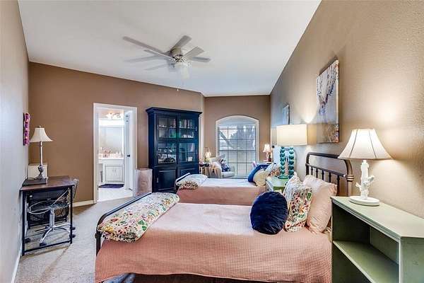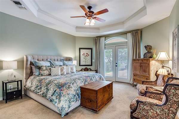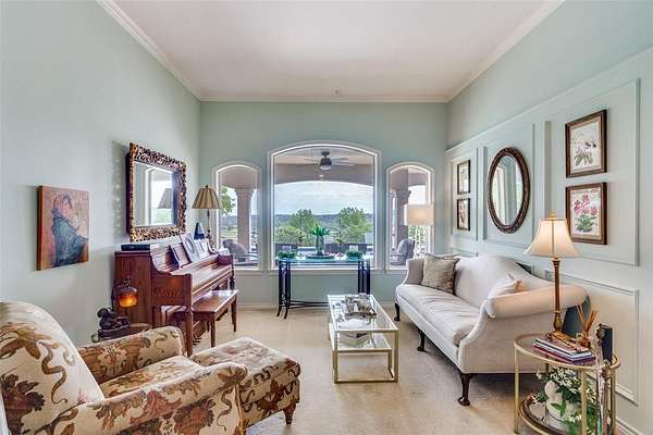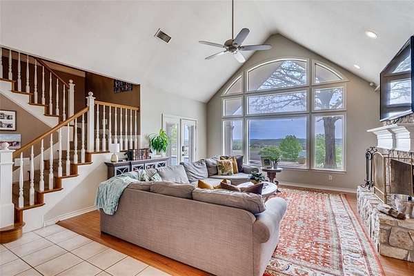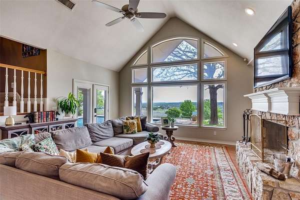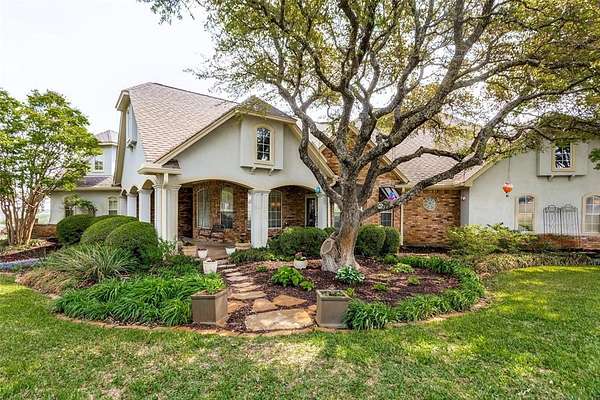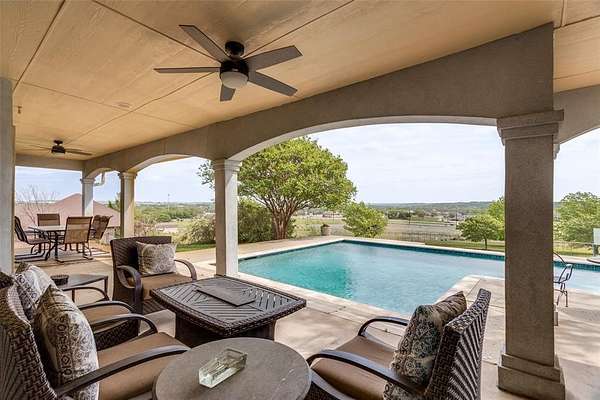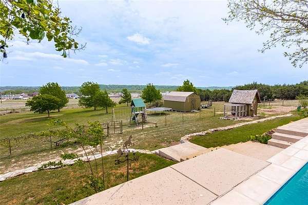 This beautifully appointed home on 2 acres in the gated community of Bear Creek is one of a kind. Pull through your private security gate and the stress melts away as you are welcomed home with 2 acres of open space, lots of trees, and sweeping front and back porches. Walk through the double front doors and you immediately catch the amazing views through the large windows in the formal living room. Kitchen is open to the den and is filled with tons of cabinets, natural light, and a large walk in pantry. The Den is just steps from the kitchen, offering soaring vaulted ceilings, a wood burning rock fireplace and large wall of windows. With a split bedroom design the primary bedroom offers a lot of privacy, and incredible views off the back of the home with pool access. The awesome primary bathroom is spacious with his and hers walk in closets, jetted tub, and separate shower with dual heads. Two more bedrooms are found on the other side of the home with a jack and jill bathroom. The large utility room has a sink and lots of room for storage. Don't miss the upstairs loft with a fun balcony overlooking the pool. This area would make a fantastic game room or media room, and has a separate enclave the current owner has used as an office. Note there is a door from the loft into the attic which offers you a large floored area for storage. Outside you will find the crown jewel of the property, an in-ground gunite pool just waiting for you to jump in and enjoy the sweeping daytime views or the expansive starry night sky. The pool is complete with a removable safety fence for small children to give you peace of mind. There are two outbuildings which could be used as a workshop or storage. A chicken coop completes the outdoor amenities. The property has perimeter fencing and a private, electric entry gate. This home offers privacy away from it all, but close enough to everything that matters. Roughly 30 min. to downtown Fort Worth and 20 minutes to Granbury! Horses welcome!