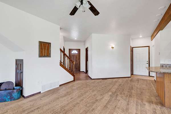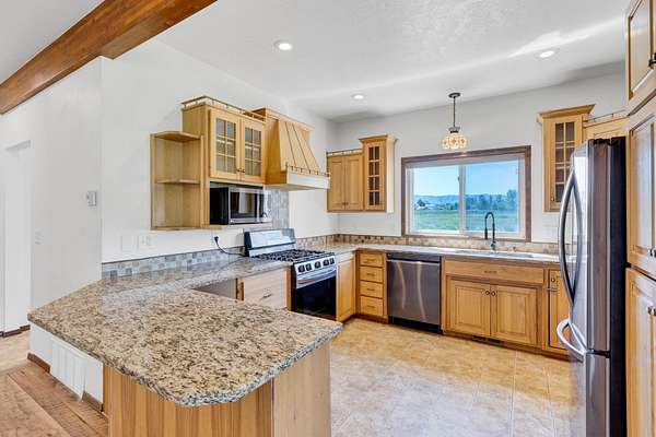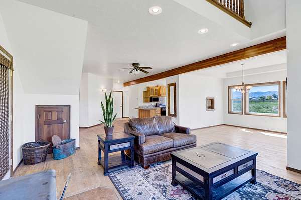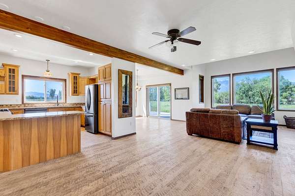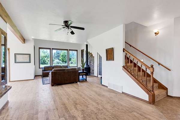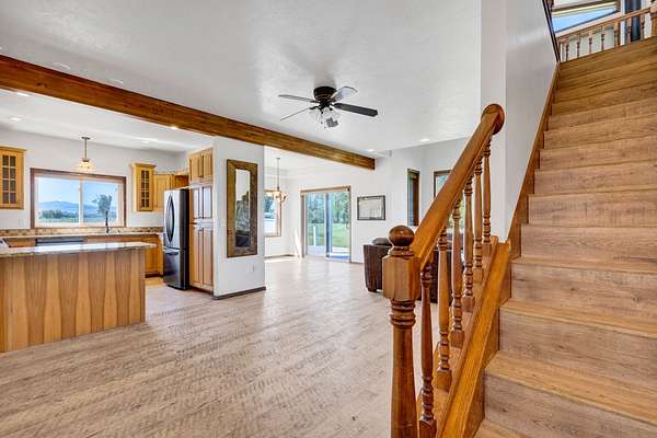 This country home on an attractive property is ready to welcome you. The home features 3 bedrooms including master suite plus a additional bonus room downstairs that can serve as a convenient office. The living room is a captivating space, defined by its high ceiling and beautiful private views. Imagine relaxing in the grand room, where the details create an atmosphere of spaciousness and refined comfort. The kitchen is enhanced by its thoughtful design with a peninsula that provides additional workspace, also featuring a formal dining space. This property sits on a beautiful setting with ample pasture. There is a meandering stream on the westside of the property along with a barn and plenty of open space for outdoor entertaining. Bring your livestock and make this gorgeous property yours.
