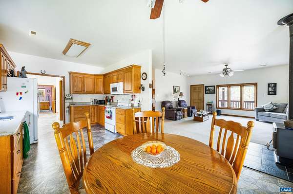 If privacy is your desire, welcome to 239 Little Farm Rd. Charming custom built rancher with one level living on 5.5 peaceful acres located in Western Amherst County near the foot of the Blue Ridge Mountains. This home offers 3 spacious bedrooms, walk-in closets and 2 and a half baths with 9'ceilings and 36" doorways and 4' hallway. An open floor plan flows easily from the kitchen, eat in area and Living room with a handsome free standing wood stove. Also, opens to 2 large covered porches with ample room for entertaining family and friends. There is an 18X30 detached garage/workshop w 100amp service and water for hobbies, mower, tractor and tools. A creek runs along one property line. Near the 3 County Lakes and National Forest New home/garage roofs 2023. New HVAC 2023.