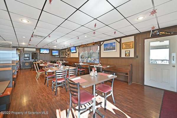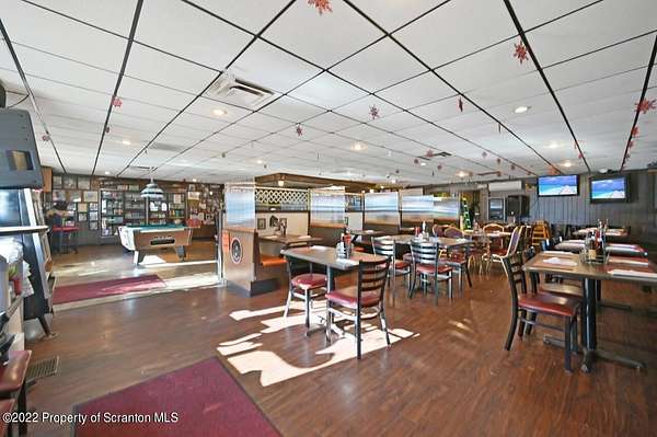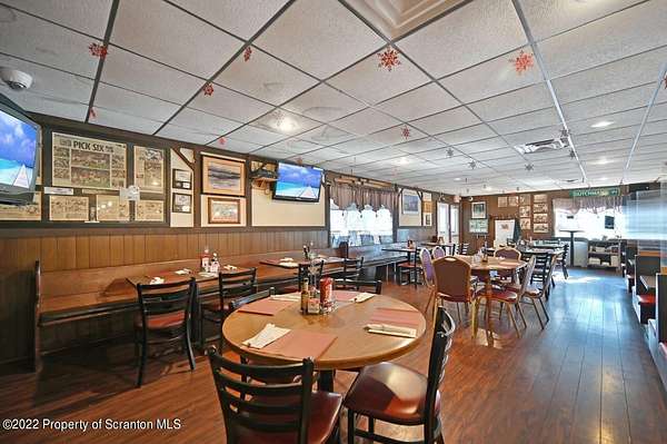 The Dutchman Tavern is a well-established bar/restaurant located just minutes off of Rt. 380 in Gouldsboro. The inside bar and dining area comfortably seats 80+ patrons with additional seasonal seating on the enclosed and covered deck of approximately 40 more. There is plenty of dry storage, freezer and refrigeration space and a walk in refrigerator with grab-n-go access to the bar area. There is also an attached income producing 2 bed 1 bath apartment included with the property. Liquor license, equipment, furniture and pool table to be included in the sale. This is a turn-key operation., Tax Information: Available, Ceiling Height: Up to 8' - Y, No Overhead Door: Y