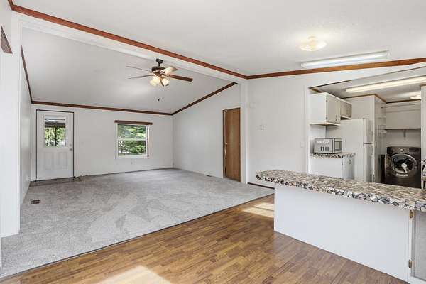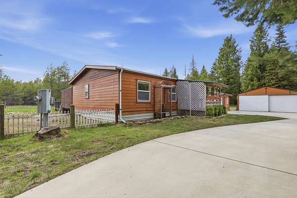 Nestled on 5 level acres, this 1992 manufactured home offers 1,440 square feet of comfortable living space with 3 bedrooms and 2 bathrooms. Inside, you'll find vaulted ceilings and an open floor plan that creates a spacious, airy feel, along with ample storage throughout. Outside, the property is set up for both functionality and lifestyle, featuring a carport and a shop, with plenty of room for animals, horses, or a small farm setup. Surrounded by other acreage properties, this location offers the privacy and space many are looking for. Conveniently situated on a county-maintained road, you're just minutes from Diamond Lake, about 15 minutes to Newport, and approximately 35 minutes to Spokane, giving you the perfect balance of rural living with nearby amenities.
