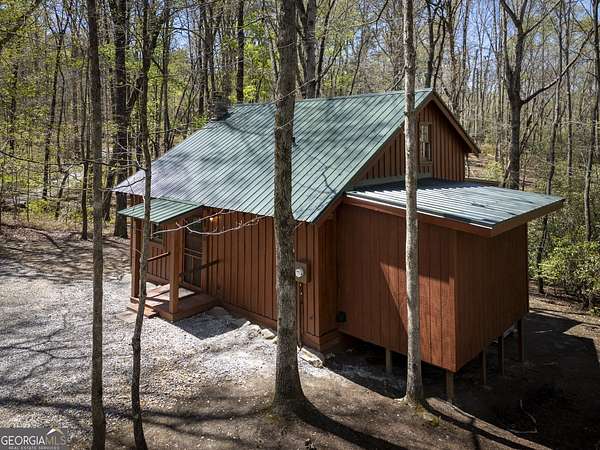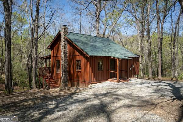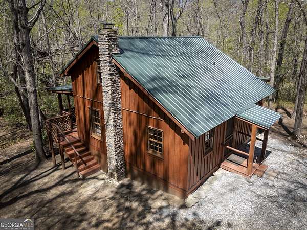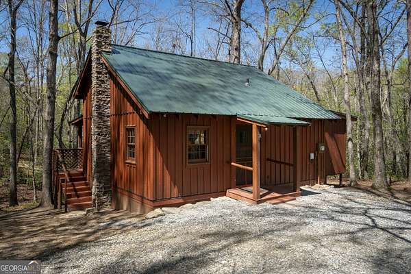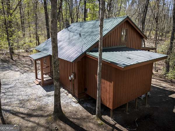 1BR/1BA Classic Cabin with a BRAND-NEW ROOF! If you're seeking true privacy and peaceful seclusion, this charming cabin is a must-see. Nestled at the very end of the road on 2.19 acres, this classic 1-bedroom, 1-bath home offers a rare sense of quiet and escape. Crafted from reclaimed timber, the cabin showcases rich character throughout, with beautifully aged wood walls, exposed ceiling beams, and flooring that display a deep, natural patina developed over time. A brand-new metal roof (added in April 2026) adds lasting value and durability, while the exterior features freshly stained board-and-batten wood siding. Inside, the thoughtfully designed open-concept kitchen and living area maximizes space and functionality. The updated bathroom includes a large shower and new tile flooring. Upstairs, you'll find a cozy bedroom with additional storage tucked into the eaves, along with a versatile loft space perfect for a home office or extra sleeping area. One standout feature of this home is the spacious laundry room, equipped to accommodate a full-size washer and dryer, plus ample storage and pantry space, an uncommon bonus in a cabin of this size! Come outside onto the generous back porch, where you can relax and take in the peaceful, wooded surroundings. The property also includes a steel-frame workshop that could easily be converted into a carport, as well as a fenced garden area with raised beds ready for planting. This unique and inviting property offers a perfect blend of rustic charm and practical living-schedule your showing today.