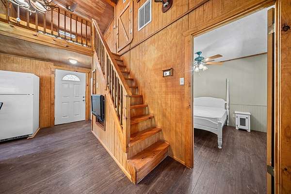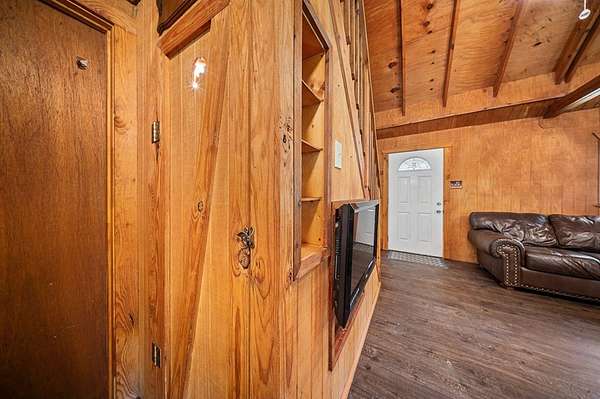 Rustic lake cabin on 1.75 unrestricted acres just minutes from Lake Sam Rayburn! Recently renovated, this charming 2-bedroom cabin offers the perfect blend of comfort and country character. The interior features vaulted ceilings, vinyl flooring throughout, and a striking deer antler chandelier that enhances the cozy rustic feel. Enjoy peaceful mornings and relaxing evenings sitting in rocking chairs on the full-length front porch, surrounded by nature. Property improvements include a newly installed well, fenced yard, and a fish cleaning station—perfect for anglers returning from the lake. Nestled in a quiet country setting and surrounded by thousands of acres of the beautiful Angelina National Forest, this property offers privacy, recreation, and the ideal East Texas getaway or weekend retreat.