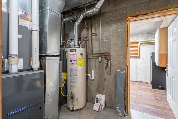 - Forced Air, Natural Gas, Wood, Wood Stove