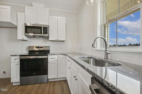 - Dishwasher, Electric Oven, Electric Range, Microwave, Stainless Steel Appliance(s), Tankless Water Heater