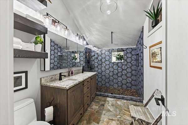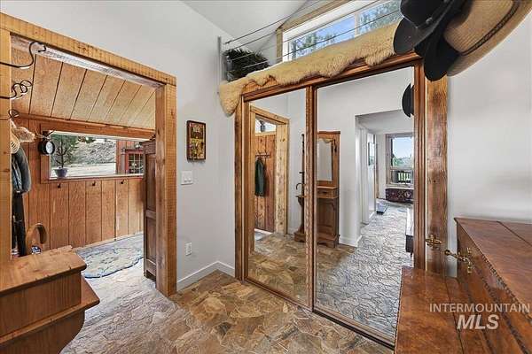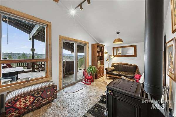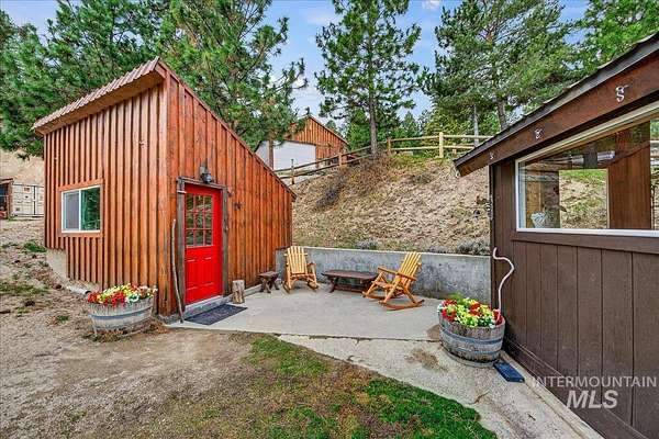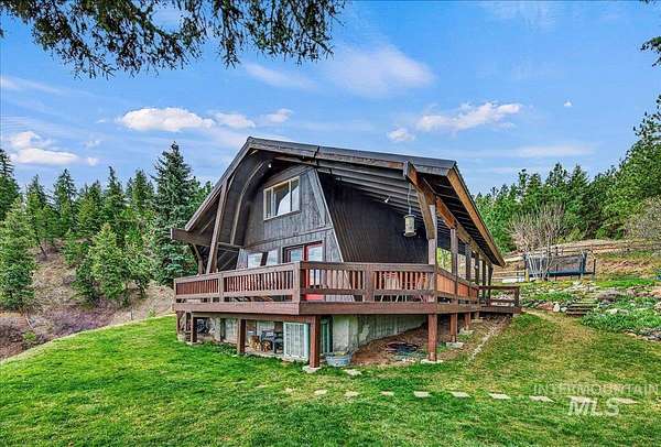 Set against the breathtaking backdrop of the Boise Mountains, this private view chalet offers a rare blend of serenity, inspiration, and opportunity just 45 minutes from Boise. Set on 7.6 acres with expansive views and open space, the property invites creativity, connection, and year-round outdoor living. The home exudes warmth and character, with thoughtful updates and a wraparound deck designed to take in the natural beauty. Ideal for artists, outdoor enthusiasts, or those seeking a peaceful escape, the setting offers both privacy and accessibility. A whole-house generator ensures uninterrupted comfort, with additional potential to expand to a 3 bed, 2 bath layout and incorporate solar for enhanced self-sufficiency. Beyond a full-time residence, this property shines as a charming, tastefully renovated mountain retreat, second home, or destination for intimate events and gatherings. Multiple structures, a 30x40 shop, and generous parking create opportunities for hosting, creative work, or a home-based business. An upper pond area with gated access offers additional potential for a private campsite or expanded use, while the greenhouse and fenced garden area-also gated-provide added income or rental potential. With no CCRs or HOA, the possibilities are as expansive as the setting-an opportunity to create a life that feels both grounded, inspired, and truly your own.