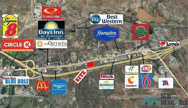 Est $3,290/moHighly visible HOTEL LOCATION - Santa Rosa, NM - 3.45 acres strategically located between I-40 and Historic Route 66. This property borders both I-40 and Historic Route 66 halfway between two I-40 exchanges 275 and 277. It is primarily flat, has all utilities available, and a traffic count from 2022 of 4914 vehicles per day on HY 66 and 17,204 vehicles per day on I-40. ALTA survey is available.
