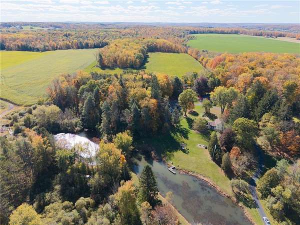 If a one of a kind place where peace, privacy, and luxury could exist perfectly-would you know it when you saw it? Offered for the first time, 36 acres of privacy, beauty, & architectural brilliance come together in this one-of-a-kind estate hidden in rural serenity. The main home, designed by a nationally recognized architect, pairs timeless craftsmanship with forward-thinking design with heated floors, cathedral ceilings, & expansive windows that fill the home with natural light. The home is also fully accessibility friendly with ADA features & private elevator to make every space comfortable and connected. A deluxe open-concept kitchen with granite counters, island, & huge walk-in pantry flows into a grand living area anchored by a floor-to-ceiling stone fireplace & an enclosed porch perfect for coffee or wine, paired with nature. The second-floor has unique and thoughtful bedrooms, & an acoustic cove engineered for perfect sound, whether it's an instrument or just the quiet echo of peace. Need even more space? The lower level offers endless potential for recreation, fitness or studio space. Every inch of this home was built to age gracefully with minimal worry- a truly perfect balance of practicality, elegance, & accessibility. The fully renovated farmhouse has vaulted ceilings, full kitchen, & an inviting massive covered porch, perfect for visitors, multi-generational living, or extended stays. Outside, experience rolling fields, gardens, & tree-lined trails punctuated by multiple stocked ponds & a small river that winds through the property. A large shop/garage space offers room for equipment, hobbies, or creative projects, while the long private driveway ensures absolute seclusion. Every view, from sunrise over the water to golden-hour reflections across the fields, feels cinematic. Whether you want to explore, garden, fish, or simply breathe, this property invites you to live well, & thrive with nature's rhythm. You could spend a lifetime searching for a property like this...or you could just call this one home. DELAYED SHOWINGS UNTIL OPEN HOUSE 2-4 PM* 10/18/25 30 min to BUF area, 20 min to Letchworth, 60min to ROC area