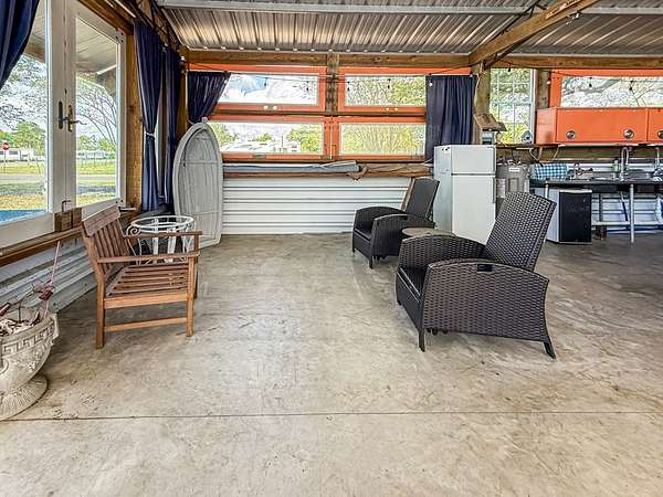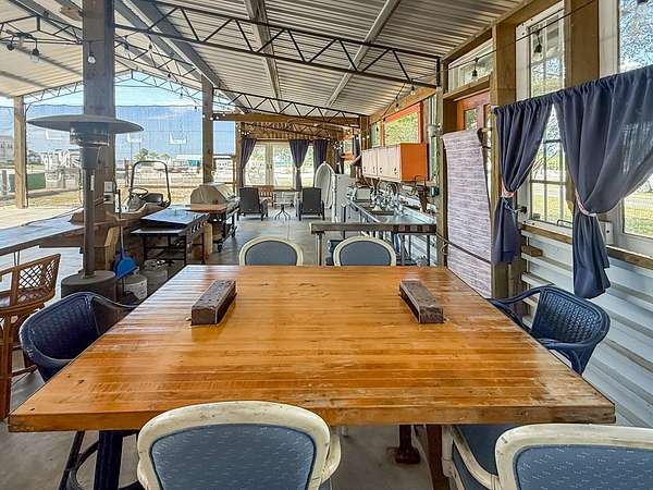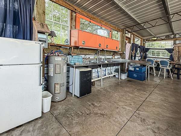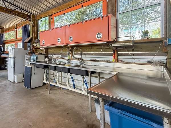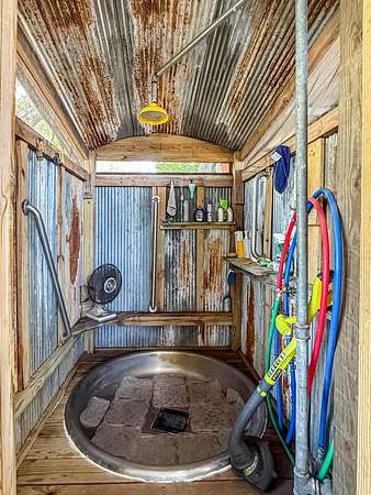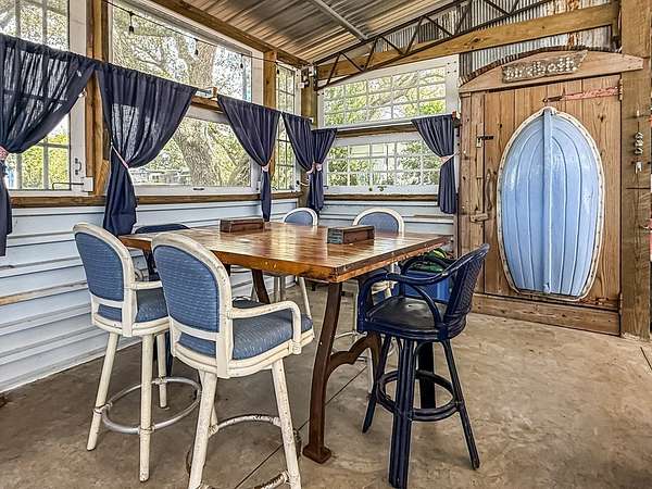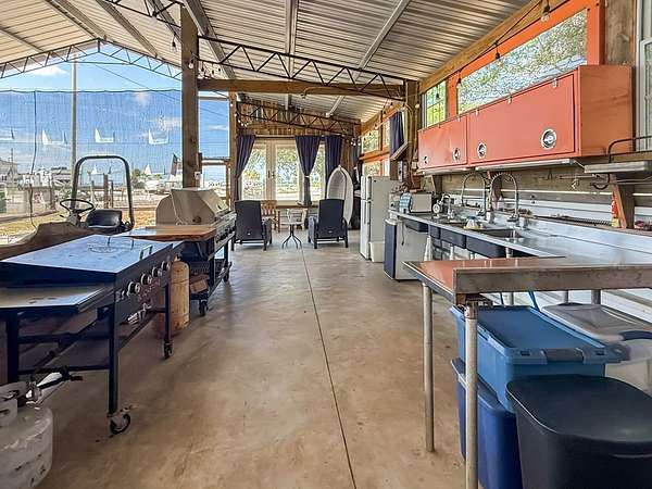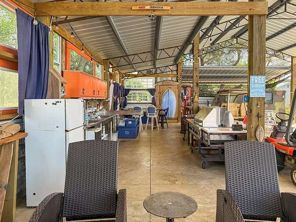 Discover the ultimate coastal retreat with this approved RV lot, fully fenced and secured by custom custom-designed area appropriate gate that blend style and function. The impressive 40x60 pole barn, partially enclosed, offers endless versatility -- from RV storage to an outdoor living extension. Every detail of this property reflects the art of reusing and repurposing; the owners have thoughtfully maximized materials and resources to create a sustainable and fully functional getaway. Conveniences include a separate shower room and toilet space, along with on-site laundry, allowing for comfortable weekend escapes or effortless full-time living. Whether you're unwinding after a beach day or soaking in the coastal breezes and glowing sunsets from your own front yard, this property perfectly balances practicality with laid-back coastal charm.