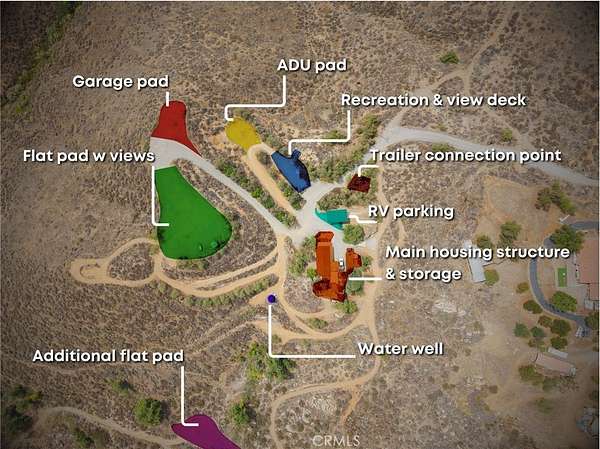 If you're searching for a private compound featuring an existing home and multiple amenities, this property is a must-see! It offers a scenic pad with incredible views to build your dream home, an additional pad perfect for an ADU, and a dedicated RV parking area with full hookups for family and friends. Plus, there's extra covered RV parking, a spacious recreation area for family fun, and a versatile workshop for your projects. Don't forget about the functioning water well with a brand new motor is on property with a 7,500g storage tank. Words, videos, or images can't do this property justice--it's truly something you need to experience in person. Custom house plans for main pad available at no cost!!! Contact me today to schedule your private tour!