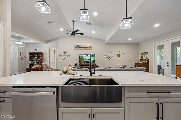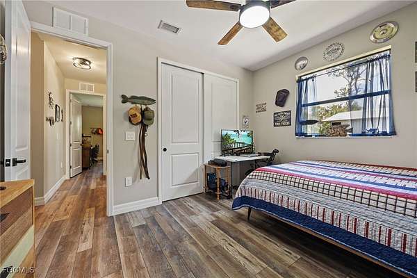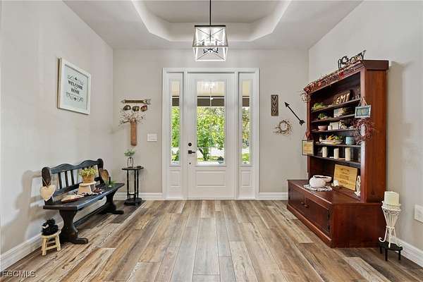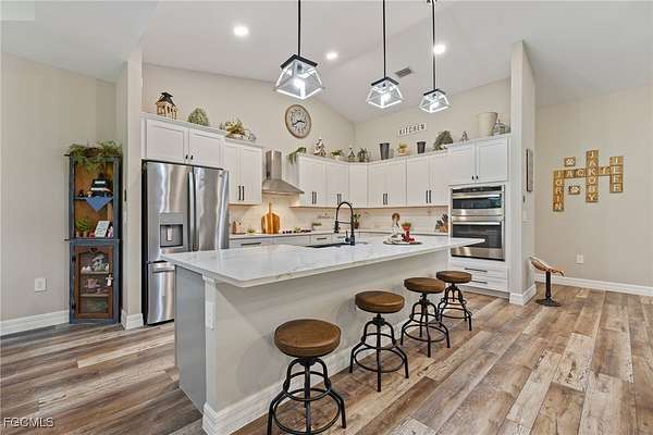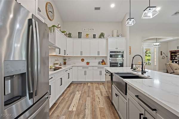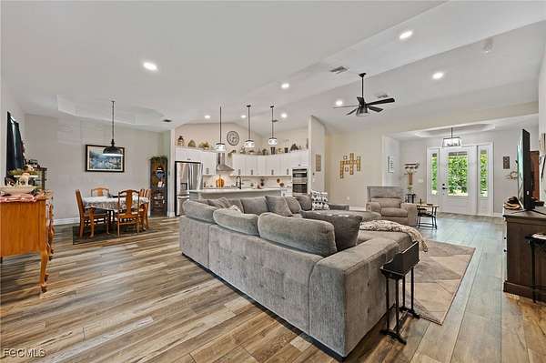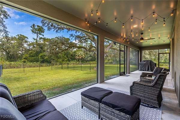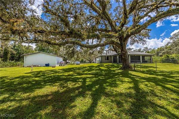 Welcome to the country living you've been waiting for, where modern farmhouse charm meets everyday luxury! Sitting proudly on 1.5 acres of beautifully maintained land with amazing Live Oak trees and a Must Have Barn! This 2022 custom built beauty offers 3 bedroom, 2 bathroom and over 2300 sq. ft. of pure comfort, style, and thoughtful design. Feel right at home rocking on the front porch or barbecuing on the screened lanai. The open concept living flows naturally, perfect for cozy nights in or hosting your favorite people. Tray ceilings, waterproof laminate flooring and modern finishes throughout add just the right touch of elegance and designer look. The heart of the home is the gourmet kitchen showcasing a two toned cabinet design, sleek cooktop with custom hood, a built in wall oven and microwave, tile backsplash, a gorgeous metal farmhouse sink, and an oversized island begging for gatherings. The walk in butler's pantry seals the deal, keeping everything organized and ready for effortless entertaining. Retreat to the private primary suite with 2 walk in closets and a spa inspired bathroom featuring modern details in dual vanities and an oversized shower. Guests will feel right at home with two additional bedrooms and a stylish shared bathroom. This home is full of extras! A spacious laundry room with cabinetry and storage, plus space that doubles as an office or hobby nook. Peace of Mind with hurricane rated impact windows, Underground utilities, and No Flood Zone. The whole home reverse osmosis system provides drinkable, pristine water. Come enjoy a little country living and take advantage of 1.5 private acres that borders secluded land, giving you the ultimate peaceful setting. The fully fenced property has gate access and separate fenced yard for your pets. There is room for a pool, but for now, enjoy the tranquil mornings and breezy evenings on the large screened lanai with no-see-um mesh. And bring your Toys to store in the massive 36' x 42' barn! Room for RV, Boat, Trucks, and Equipment. This isn't just a house, it's the lifestyle you've been waiting for with modern farmhouse vibes, space to breathe, and move in ready perfection. Schedule your private showing today before someone else scoops it up!