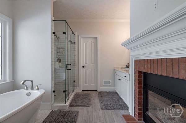 - Breakfast Area, Breakfast Bar, Built-In Features, Butler's Pantry, Cathedral Ceiling(s), Ceiling Fan(s), Double Vanity, Fireplace, Main Level Primary, Pantry, Primary Suite, Programmable Thermostat, Separate Shower, Split Bedrooms, Tray Ceiling(s), Vaulted Ceiling(s)