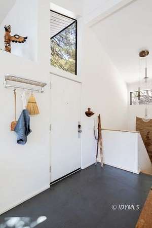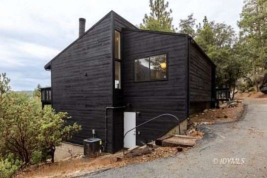 A mountain home in the modern style. c.1987. Featuring multi directional shed roof, tons of windows and skylights, natural light flows in from every angle. The home sits on a massive 3 acre lot providing seclusion and panoramic treetop views of the San Jacinto Mountains, Tahquitz Peak and Lily Rock from both levels of the house. Open living area/kitchen with soaring vaulted ceilings, beautiful pinewood floors and floating hearth are just a few features of this stunning home. Three comfortably sized bedrooms, including a very spacious master bedroom downstairs with en suite and private deck make the layout of the home very functional. All three bathrooms have been remodeled and feel clean, bright and uncluttered. The deck is a great space for outdoor dining while enjoying the incredible view. Surrounded by huge granite boulders and mature trees, this could be your cabin in the sky. Most furnishings are available with the house, negotiable through sale.