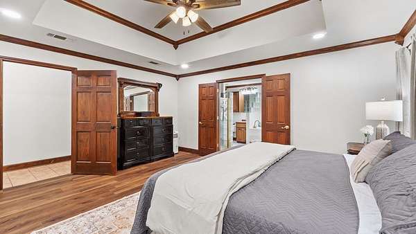 Discover a truly unique estate that masterfully blends the tranquility of country living with sophisticated urban design. Its distinctive double hip roofs rise elegantly against a backdrop of towering trees, tucked away on a private drive just off MC 24. A wrought iron security gate provides exclusive access and peace of mind. The expansive 884 sq ft three-car garage offers ample space, easily accommodating large SUVs, while manicured landscaping, featuring graceful Crepe myrtles, beautifully frames the residence. Inside, the home's grand design provides an ideal setting for family life and cherished memories. Natural wood finishes and solid wood doors exude warmth, complemented by towering ceilings throughout the main living areas. Two versatile rooms offer flexibility, perfect for a dedicated home office, a spacious media room, or a formal dining area, given the convenient breakfast nook adjacent to the kitchen. An additional living space presents further possibilities, ideal as a home theater or a generous suite for guests or extended family. Each bedroom features ample space and generous closets, easily accommodating substantial furnishings. The property is offered with 15 acres, with an option to purchase an additional 10 acres for expanded privacy or utility. The additional 10 acres is available for $59,000.00 and would make this a total of 25.38 acres. This presents a rare opportunity to embrace country living without compromising on sophisticated comfort. Recently installed Luxury Vinyl Plank flooring, replacing all carpeted areas, elevates the home's contemporary appeal. While personal enhancements may be desired, this residence provides an exceptionally solid foundation and enduring style. The property additionally has a 25 by 30 foot pole barn to cover your outdoor equipment. This has a nice stand of Trees to allow you a private residence. Driveway is also known as Moonshine Rd.