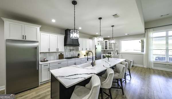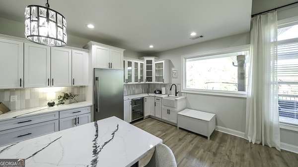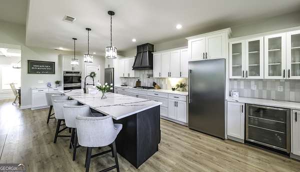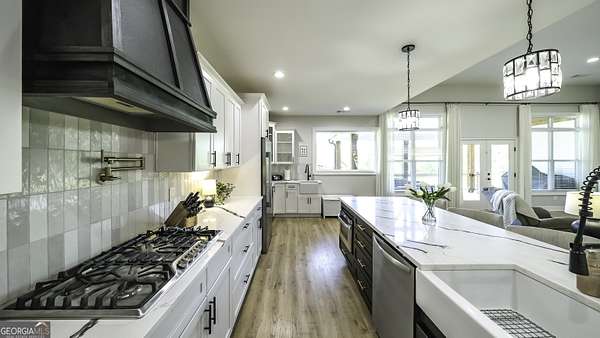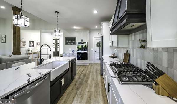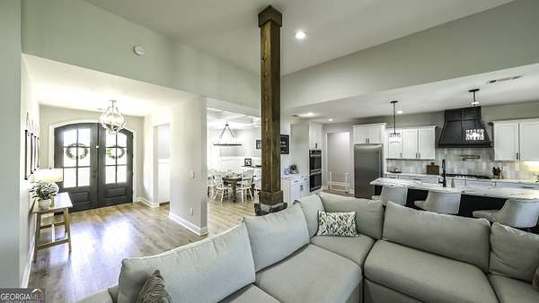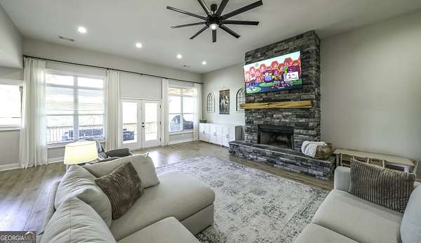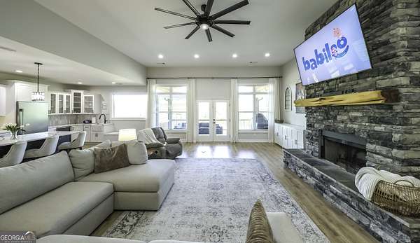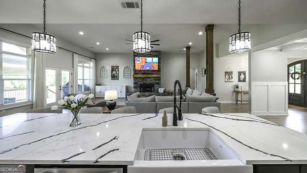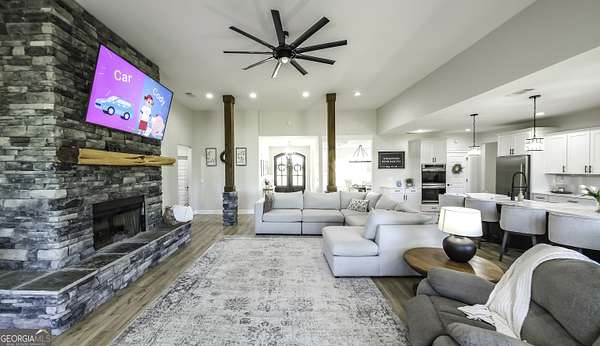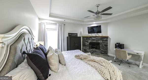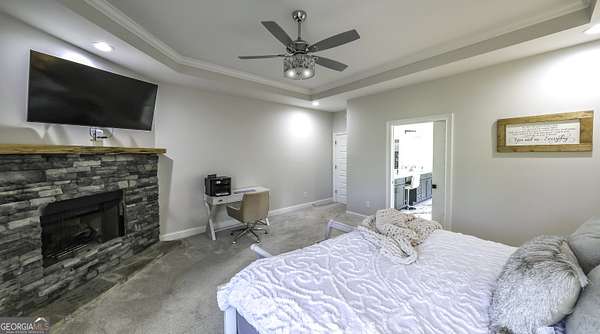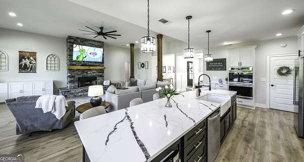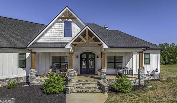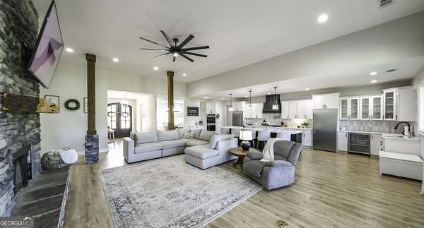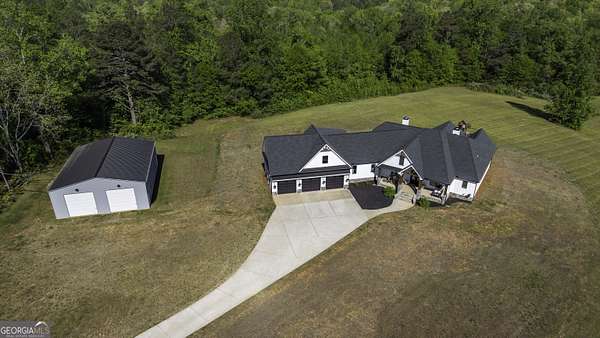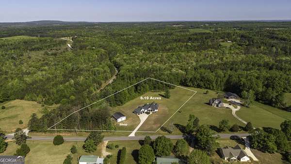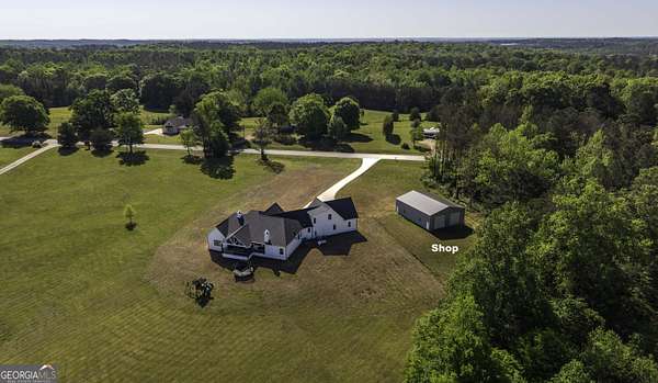Welcome to your private retreat in Roopville, set on 6.19 beautiful acres where elevated design meets everyday functionality. This 4 bedroom, 3.5 bath home is thoughtfully designed for both comfort and entertaining, featuring an open concept layout filled with natural light and warm, inviting finishes. The main living area is anchored by a floor to ceiling stone fireplace that creates a stunning focal point. The kitchen is designed to impress, offering quartz countertops, a farmhouse sink, a beautifully designed hood, an oversized island perfect for gathering, an oversized separate refrigerator and freezer, and a large walk in pantry. A dedicated wet bar area adds convenience and makes hosting effortless. The primary suite is a true retreat, complete with its own fireplace for added warmth and ambiance. The layout continues to impress with a laundry room that connects directly to the primary closet, creating a level of everyday convenience buyers love. Just off the garage, a built in drop zone with hooks and storage provides the perfect mudroom style space to keep things organized. The laundry room also features a dog wash station, a thoughtful addition for pet owners. The oversized 3 car garage offers exceptional flexibility with room for larger vehicles, a boat, or additional storage. Step outside and experience what truly sets this property apart. The expansive 6.19 acres provide space and privacy, while the impressive 40x50 shop is ideal for a workshop, business use, equipment storage, or hobby space. An unfinished bonus room above the garage offers incredible potential for future expansion, whether you envision a home office, media room, or guest suite. This property offers a rare combination of space, functionality, and upgraded features in a peaceful Roopville setting, giving you the freedom to live, work, and unwind all in one place.