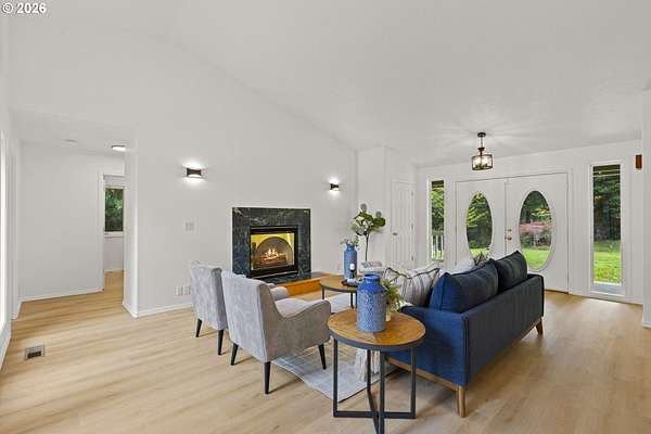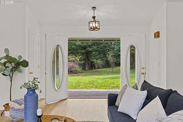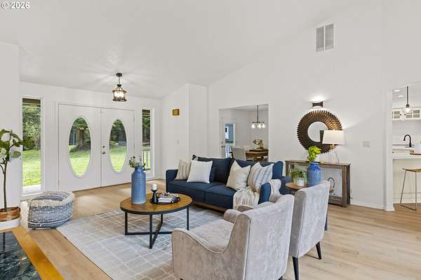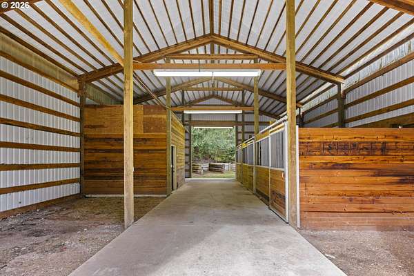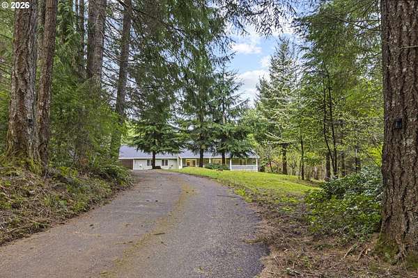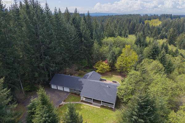Tucked away on 5 private acres, this single-story home offers the perfect blend of comfort, space, and functionality. Inside, you'll find 3 spacious bedrooms and 2 bathrooms, complemented by soaring vaulted ceilings that create an open, airy feel throughout the living areas. The primary suite is on the opposide side of the house from the 2nd and 3rd bedrooms. Recent updated include a brand new roof, new interior and exterior paint, light fixtures, and flooring. Car enthusiasts, hobbyists, or those needing extra storage will appreciate the oversized 3-car garage, providing ample room for vehicles, equipment, or a workshop. Equestrian lovers or those seeking a versatile outbuilding will be drawn to the impressive 36x48 barn, thoughtfully designed with 3 stalls and space to easily add three more. Whether you're housing animals, storing equipment, or pursuing projects, this barn offers endless potential. Surrounded by nature and set in a peaceful, private setting, this property offers the ideal balance of rural tranquility and everyday convenience.