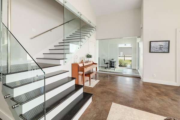 - Beamed Ceilings, Breakfast Bar, Ceiling Fan(s), Ceiling-High, Ceiling-Vaulted, Granite Counters, Interior Steps, Kitchen Island, Multiple Living Areas, Open Floorplan, Pantry, Primary Bedroom On Main, Recessed Lighting, Study/Home Office, Walk-In Closet(s)
