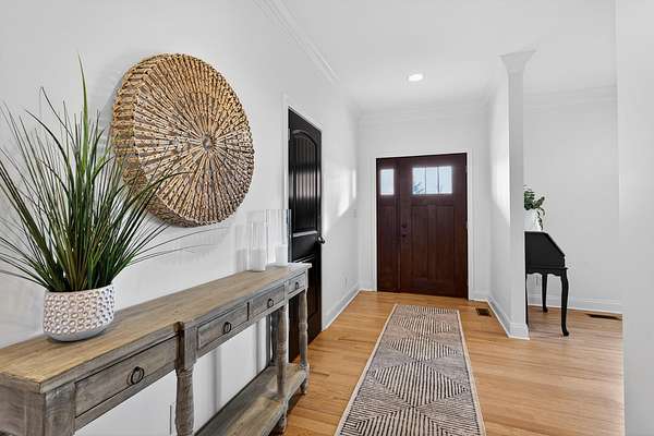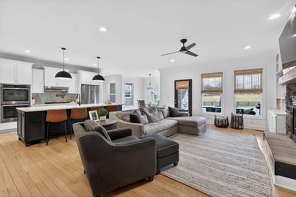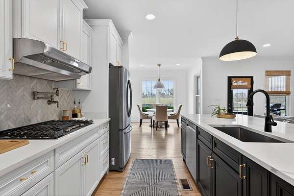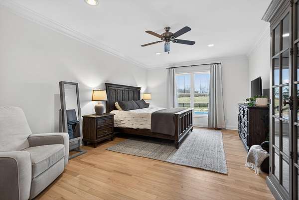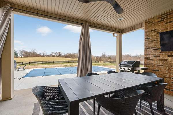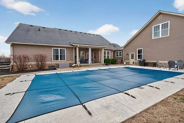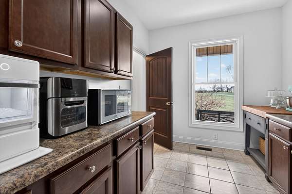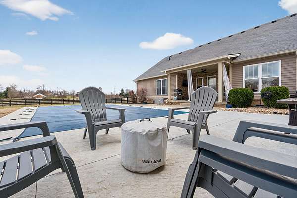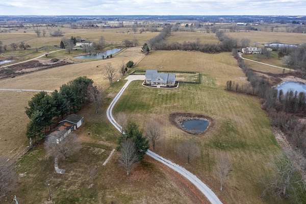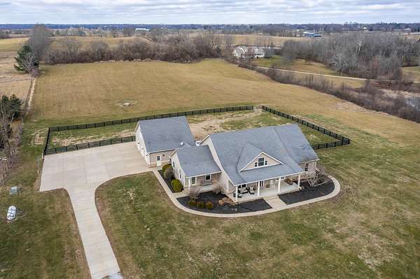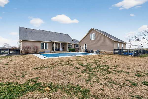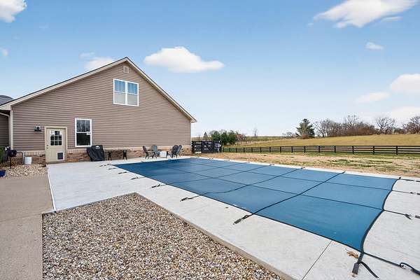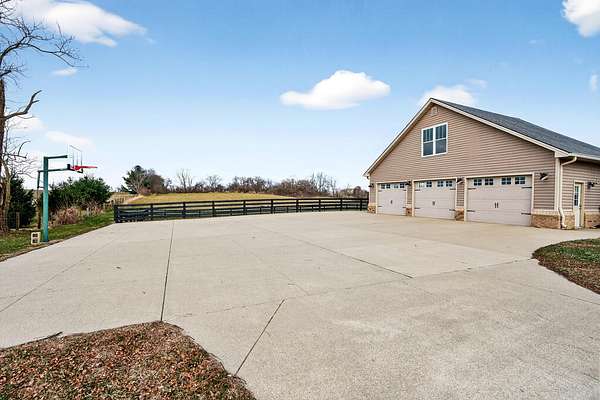 An exceptional offering of refined country living, this stunning 11-acre estate blends privacy, elegance, and convenience-just 15 minutes to ever growing Hamburg Shopping Center! And just six miles to downtown Winchester! Thoughtfully updated throughout, this beautifully appointed ranch-style residence delivers timeless design and modern luxury at every turn. The light-filled, open floor plan showcases all new flooring, fresh designer paint, and extensive upgrades throughout the home. At the heart of the home, the gourmet kitchen is both striking and functional, featuring an expansive statement island, stone countertops, custom cabinetry, double ovens, and a gas cooktop-ideal for both elevated entertaining and everyday living. A butler's pantry and laundry room provide additional prep space and storage. The great room exudes warmth and sophistication with rich hardwood flooring, a gas fireplace, and custom built-ins. The primary suite is a true retreat, offering a spa-inspired bath with a soaking tub, an impressive tiled shower, and a generous walk-in closet. Two additional guest suites share a beautifully designed Jack-and-Jill bath. Additional living space includes a 400-square-foot bonus room above the three-car garage, which is the 4th bedroom! Expansive unfinished walk-up attic conveniently located off the kitchen-presenting exceptional potential for future customization. Outdoors, the home unfolds into a private sanctuary. Enjoy tranquil countryside views from the front porch swing, entertain on the covered rear patio, or unwind beside the in-ground saltwater pool, creating an idyllic backdrop for both relaxation and gatherings. A rare opportunity to own a luxurious, turnkey property offering serene acreage, upscale finishes, and unmatched proximity to town.