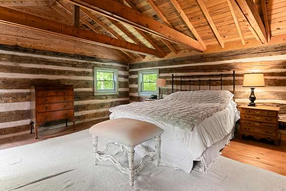 Historic mountain living! 2395 Hortons Creek offers the pioneering living experience of the early 1800's with 21st century benefits. The original cabin hails from the Bandana Community in Mitchell County, NC, built for a circuit court judge in 1810; the second cabin is from 1840. In the 70's the cabins were dismantled and moved to Hortons Creek, lovingly restored and modernized for a magical escape or permanent home on 18+ lush private acres. Full front and back rocking chair porches and stone steps to the level grassy yard. Each side has a cozy fireplace and connects on both levels by an anteroom and bath. The modern kitchen has a charming rustic feel and a kitchen island perfect to set up service for lots of hungry folks. Ample bedrooms accommodate large or small gatherings, and short-term rentals are allowed. There's a spring with a 500 gallon reservoir for personal use or for a second home. 1 Ghz internet, 30 min to Asheville, easy drive to the high country and swimming holes!