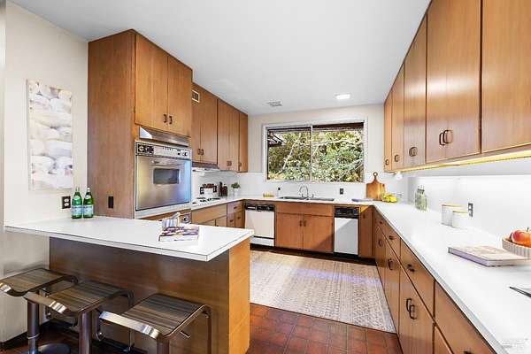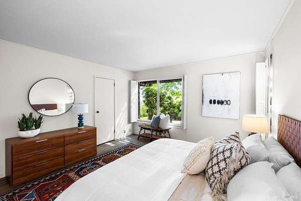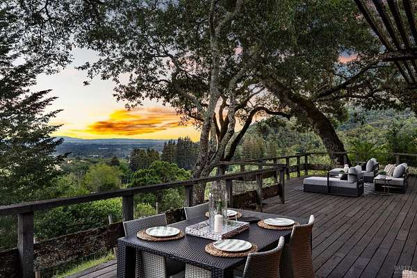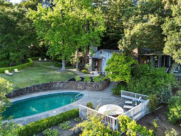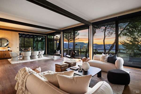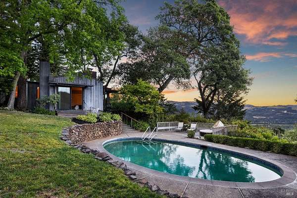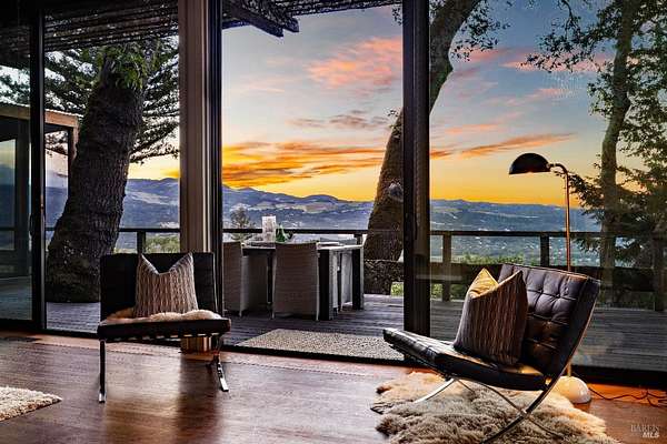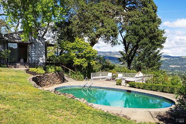 Designed by Joseph Esherick - one of California's most celebrated 20th-century architects and completed in 1960, this landmark Sonoma Valley residence is a compelling expression of his site-sensitive approach to architecture. Through his masterful use of proportion, materiality, and light, Esherick created a home that feels inseparable from its setting. Set on nearly 8 acres at the top of the exclusive Sobre Vista Estates enclave - one of Sonoma Valley's most coveted residential addresses, flanked by vineyards and surrounded by some of the valley's finest estates, 2395 Sobre Vista Road commands sweeping 180-degree views across Sonoma Valley toward Mount Diablo, San Pablo Bay, and the vineyards and mountains beyond. The setting is extraordinary, but it is Esherick's architectural response to that setting that makes the property so rare. His signature is evident throughout, from the vertical-board exterior siding and warm interior paneling to the soaring open-beam ceilings and carefully composed relationship between scale, openness, and outlook. Expansive walls of glass create a seamless connection between indoors and out, reinforcing the essential principles of his work and blurring the boundary between the built environment and the natural world. This three-bedroom, three-bath single-level residence includes two wood-burning fireplaces, original hardwood floors, an expansive view deck, and a screened outdoor living room. The grounds anchored by a majestic redwood grove, stately oak trees, an inviting swimming pool, and a lawn area extend the architectural experience into the landscape and capture the essence of California living. Just minutes from Sonoma Plaza and world-class wineries and restaurants, yet offering exceptional privacy and serenity, the property presents a rare opportunity to steward and restore a meaningful work by Joseph Esherick. This is a residence of true architectural pedigree, where enduring mid-century design, intentional siting, and a profound connection to the landscape come together in one of Sonoma's most exceptional settings.