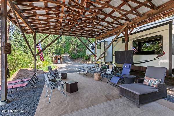 This exceptional 1.29 acre lakeview property, complete with a private boat slip and a large RV open pole building, offers wonderful 3-season enjoyment. Water, power, and septic are already in place, and the county-maintained road provides reliable 4-season access for your future Idaho dream home. You will also enjoy access to the community beach and swim dock. Long summer days lead to gatherings around the fire pit. On cooler or rainy days, relax wrapped in fleece blankets under the carport surrounded by nature. Harrison's quaint downtown is just a short drive away, along with excellent opportunities for hiking or biking the Trail of the Coeur d'Alene's and excellent opportunities for hiking or biking the Trail of the Coeur d'Alene's and exploring the area. This turnkey property is ready for you to bring your vision to life in 2026!