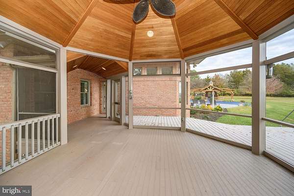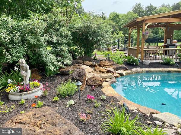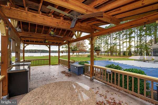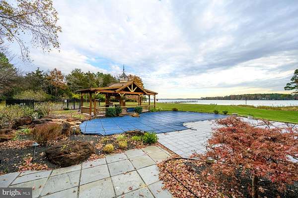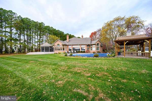 Located within 2 miles of historic St. Michaels this exceptional waterfront estate blends timeless elegance with a resort-style setting. This 4,200+/- sq. ft. custom, single-level all brick residence showcases soaring ceilings, an abundance of natural light, and panoramic views of Broad Creek from almost every room. A huge great room featuring a large brick fireplace and open living / dining options. There is a gorgeous gourmet kitchen complete with quartz counters, stainless steel appliances and walk in pantry, seamlessly flowing into a spacious family room with a timeless double sided brick fireplace and built-in bookcase. An architecturally stunning screened octagonal porch-perfect for relaxing or entertaining. A brick-floored sunroom with gas fireplace and pool bath leads to an expansive patio overlooking the waterside pool, framed by a rock waterfall, and custom gazebo. The luxurious primary suite features cathedral ceilings, French doors leading to the sunroom and a spa-inspired bath with walk in tile shower and soaking tub. Two additional en-suite bedrooms, a large den with custom built-ins perfect for library or additional bedroom, and a spacious butler's pantry with granite counters, extra refrigerator, stainless sink and additional cabinetry. A separate study and conditioned workshop offer versatile space. Set on five beautifully landscaped acres with southern exposure, the property boasts 370+/- feet of protected shoreline and a 350-foot private pier with 6 feet of deep water. Boating enthusiasts will appreciate the 15,000-lb and 8,000-lb lifts, two additional slips, and a floating dock. A gated 30' x 40' flower/vegetable garden with raised beds, an oversized 2-car garage and large garden shed complete this beautiful home. Septic is for 3 BR but office could be BR #4.