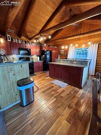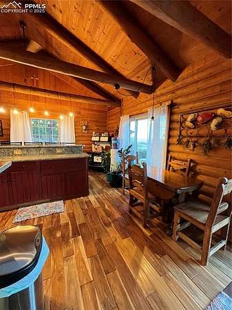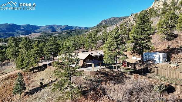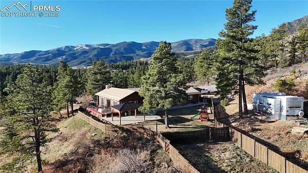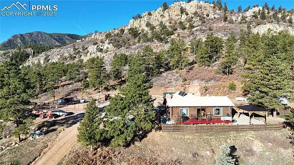 Conveniently located only 30 minutes from Pueblo and 45 minutes from Colorado Springs, this rare gem sits nestled on the mountain with a side deck overlook of Pike's Peak and Pueblo. The log cabin-styled home is situated in the center of a 37-acre lot a half mile off the main road. There are approximately 20 acres of wooded pines with 4 carved out trails, one that leads down to the creek at the corner of the property. The portion of land covered with scrub oak can be cleared and used for livestock. There is a half-acre kennel for goats, dogs, or both. Connected to the kennel are two full-size chicken coops. Also on the property is a 10x50 ft. greenhouse with 6 raised beds inside and 3 outside. The back yard is fenced in with a 5 ft. privacy fence to keep dogs in and wildlife out. There is a 12x16 ft. gazebo in the back yard that is great for entertaining guests. Electric is run in the back deck to support a hot tub. The house has many updates, including concrete sidewalks poured around the entire house, granite countertops in kitchen and bathroom, hardwood teak floors, copper sinks and four new Champion windows. The utility room was recently converted into a second bathroom, with all new amenities. Well water is provided, with a new filtration system inside the house and an updated on-demand water heater. Pictures do not do it justice. Come and see!
