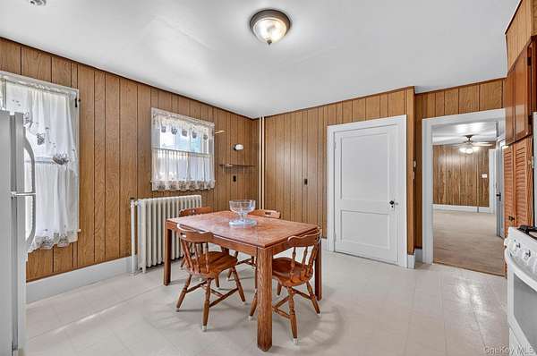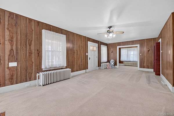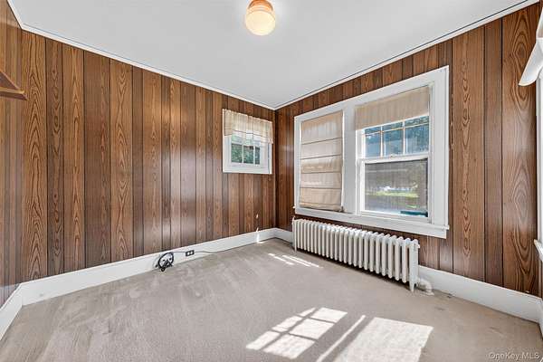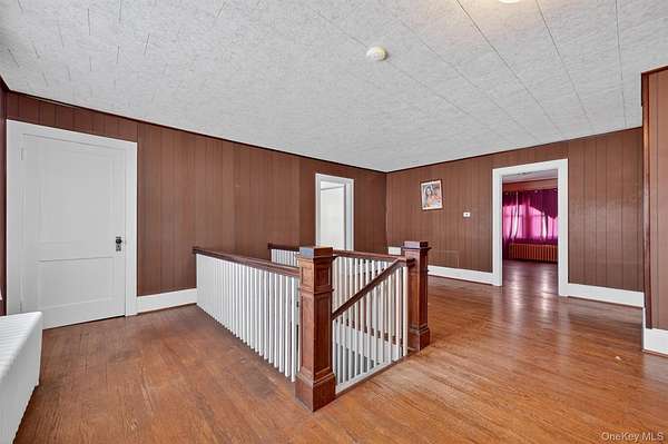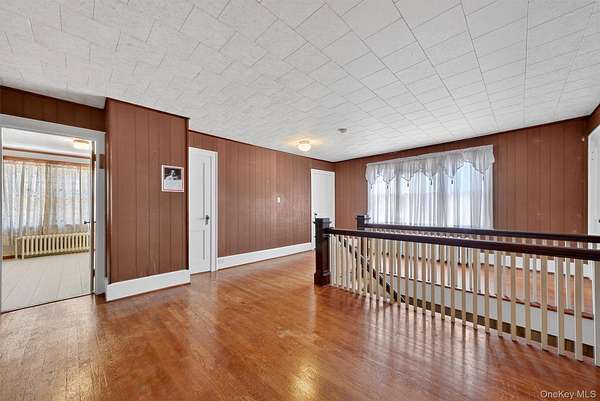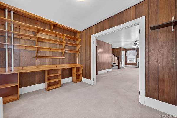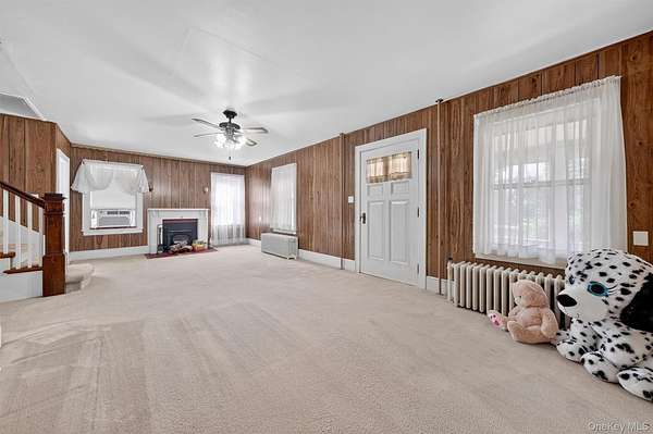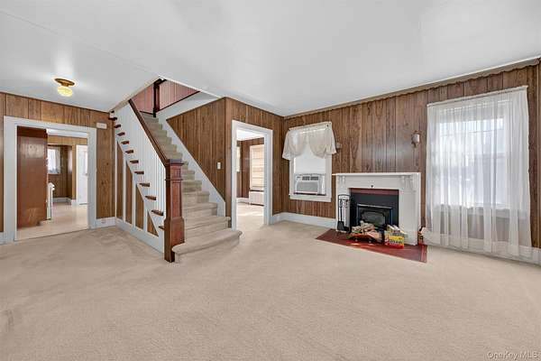 Welcome to this Cape Cod-style home in the heart of Wappingers Falls, NY. Built in 1920 and thoughtfully cared for over the years, this residence rests on a 1.53-acre lot with mature trees that anchor the property with timeless beauty. Offering 4 bedrooms and 2 baths across 2,775 square feet, it blends warmth, character, and everyday comfort. The inviting covered porch sets the tone before you even step inside. Once through the door, the living room becomes the centerpiece of the home, with its wood-paneled walls and cozy fireplace that feels both welcoming and enduring. The home's layout flows into flexible spaces, including a bonus room with built-in shelving, perfect for a home office, study, or creative pursuits. The kitchen combines practicality and tradition, with abundant cabinetry, space for a large dining table, and direct access to the backyard for easy indoor-outdoor living. Upstairs, generously sized bedrooms and custom built-ins highlight the craftsmanship of the era, offering one-of-a-kind storage solutions you won't find in newer homes. A clean and dry basement further extends the storage opportunities. Outdoors, the property continues to impress with a detached garage, a barn-style outbuilding suited for storage or workshop needs, and a private backyard designed for relaxation or gatherings. Set in Wappingers Falls, this home combines space and character with a location that keeps everyday life within easy reach. Enjoy nearby access to Metro-North trains, Route 9 shopping and dining, and the scenic Hudson River. Whether you want room to spread out at home or quick connections to local amenities, this property brings both together in one inviting setting.