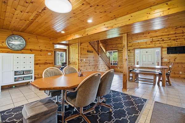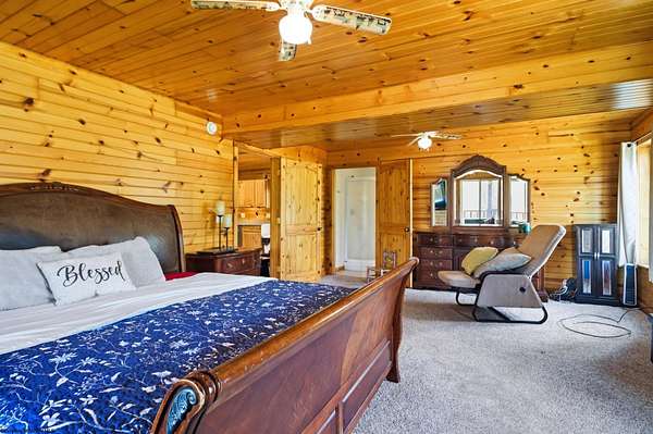 Welcome to your private retreat! This custom-built barn-style home, completed in 2016, sits on 55.55± acres of mostly wooded land, offering the perfect blend of seclusion and convenience. Inside, you’ll find 4 bedrooms and 4 full baths, including a spacious primary suite and a second bedroom on the main level for easy living. Upstairs features two large bedrooms, one with its own private bath-ideal for guests or additional privacy. The home is filled with character, showcasing tongue-and-groove walls and ceilings throughout, creating a warm, inviting cabin feel. Full basement with a full bath. One area ready for a theater room, wired for surround speakers. Step outside to enjoy the impressive 54’ covered front and back porches-perfect for relaxing, entertaining, or taking in the peaceful surroundings. The acreage offers excellent potential, with several cleared areas ready for additional building sites, while the remaining land provides privacy and a natural wooded backdrop. Perfect for a farm, horses, or hunting.