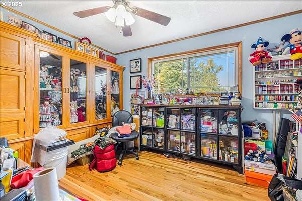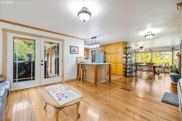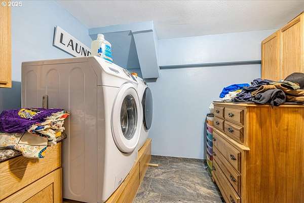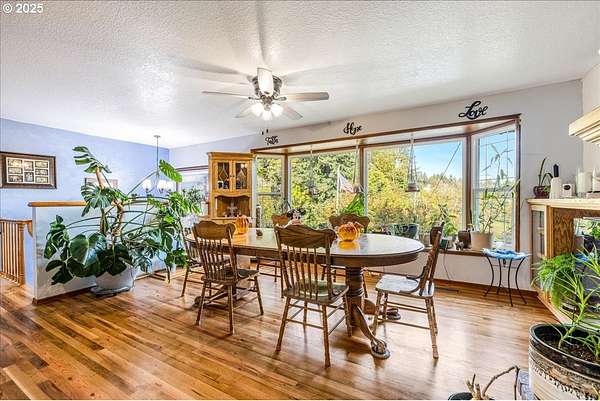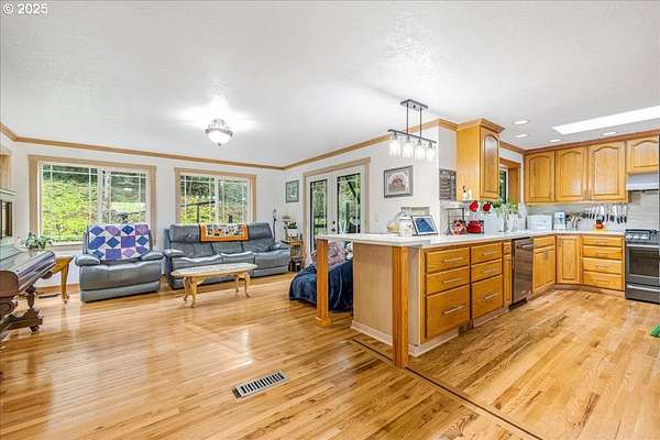 4.21 acres of special agriculture land in one of Salem's most desirable locations in South Salem. The land itself offers privacy and serenity with an artesian well and creek that lines the west end of the property, close proximity to schools, wineries, tree farms and agriculture. Property offers a 5 bedroom/3 bath home with recent additions and two primary suites. A 1966 home with all main systems updated over the last 5 years PEX and copper plumbing, updated electrical panel, septic system and leach field, and exterior paint. True hardwood flooring throughout the upstairs where the first primary suite has vaulted ceilings, full bathroom, and a walk-in closet. Two other cozy bedrooms and a full bathroom are upstairs. A spacious dining room that flows into the updated kitchen with Corian countertops, and crown molding throughout the kitchen and living room. Newer appliances, stainless gas range and dishwasher and plenty of cabinetry for storage. French doors that lead to a Timber Tech decking which runs the length of the home and surrounds an above ground pool. The downstairs has another bedroom and the second large primary suite with a full bathroom (walk-in shower) and lots of closet space. In addition to the main house the property has a barn with electricity; 3 outdoor and 2 indoor bays, a workout room, and finished storage room with attic. The property includes a solar panel array to power the house, barn, and pump house. There is room for parking vehicles, RVs, trailers, and/or boats. A long asphalt driveway lined with fruit trees (apples, cherries, plums, and peaches) welcome you home. Schedule a showing to experience this home and property in person.