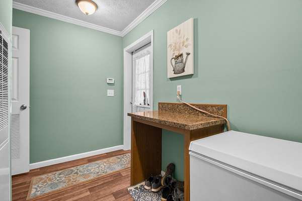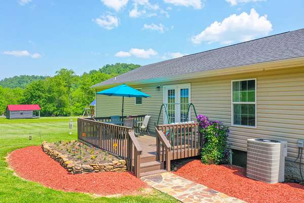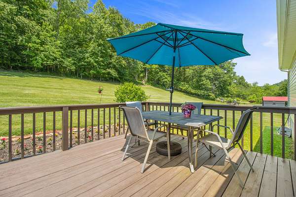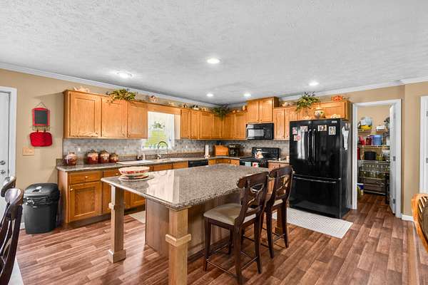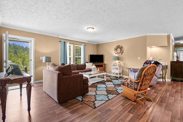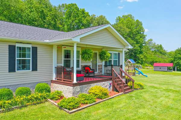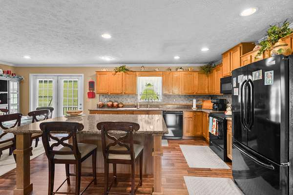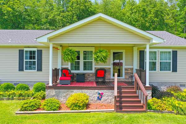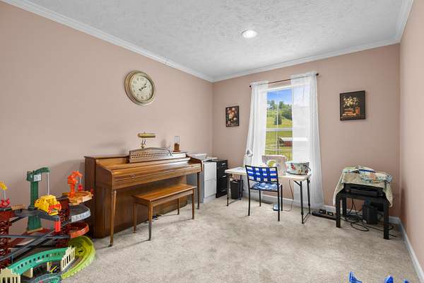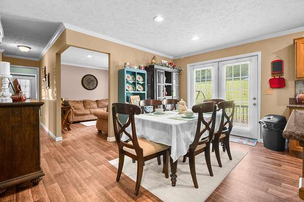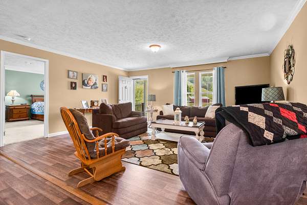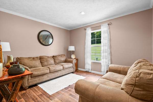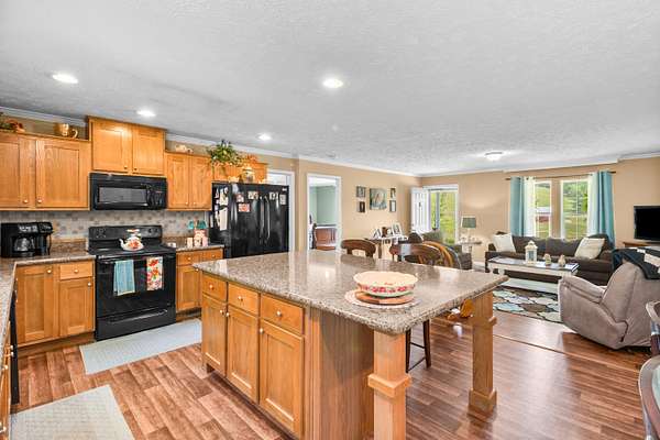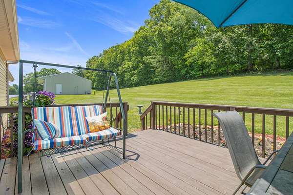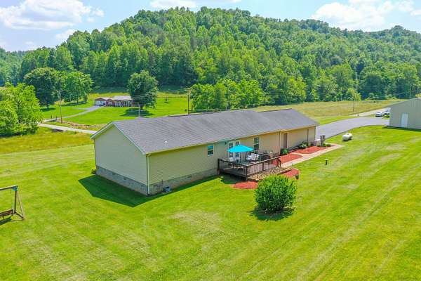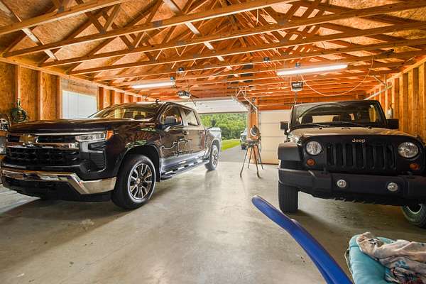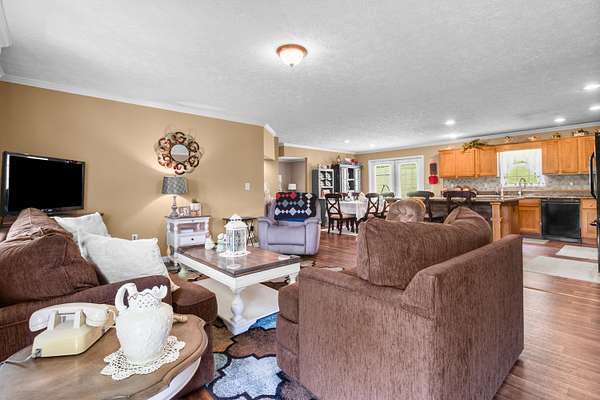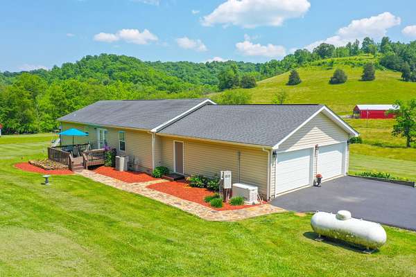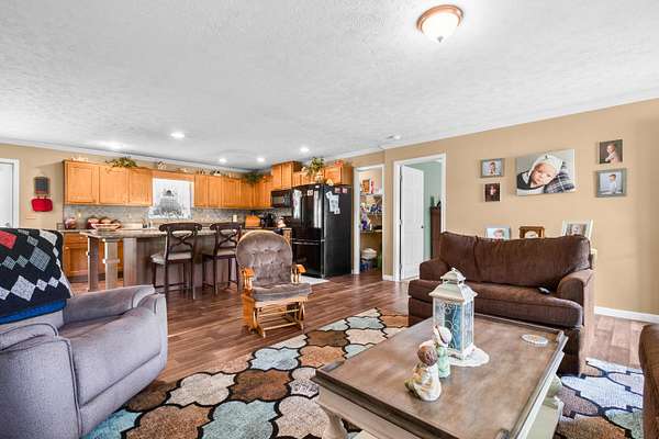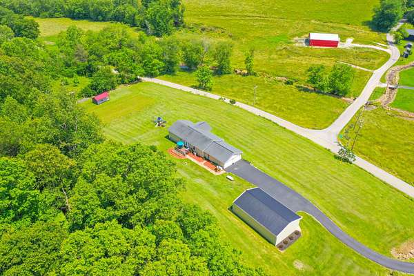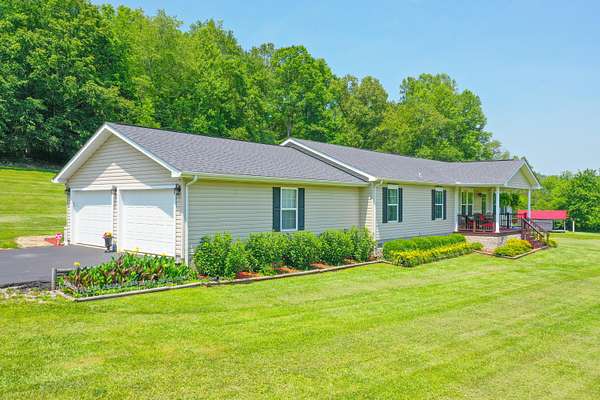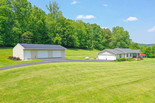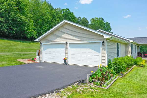 This rare custom modular home has been converted to real property and sits on 4.53 flat, mowable acres with wooded privacy on two sides. Built on a permanent foundation with 2x6 walls and extra insulation, it offers long-term value and very affordable utilities. Inside, you'll find spacious bedrooms, an oversized living room, a flex bonus room (possible 4th bedroom), and a large kitchen with ample cabinetry and an oversized island. Outside, enjoy a 2-car attached garage, a full-house generator, and a wired shed (formerly a canning room). A detached 1,350 sq ft 3-bay garage (built in 2020), a blacktop driveway, and a peaceful view of a neighboring farm complete the package. Properties offering this much usable land, thoughtful upgrades, and privacy rarely hit the market-don't miss your chance!