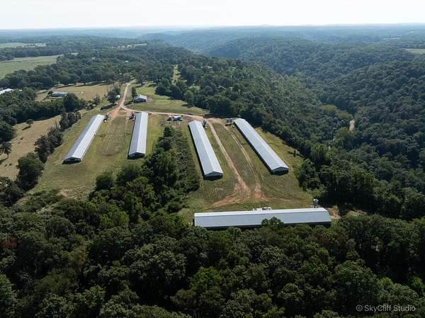 A rare opportunity to own a profitable 5-house turkey farm near Washburn, MO. The owner has secured a letter of intent to contract with Butterball, offering a clear path to resuming operation. The farm will require some final updates to meet Butterball's specifications, but a full suite of equipment is included at no additional cost. Numerous updates were already made in 2022, including new curtain machines & curtains, quad heaters, and feed lines, 36'' center fans, and exhaust fans. This 80-acre property is a smart investment, priced for excellent cash flow potential. Definitely worth considering.