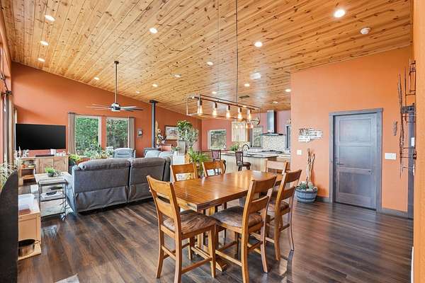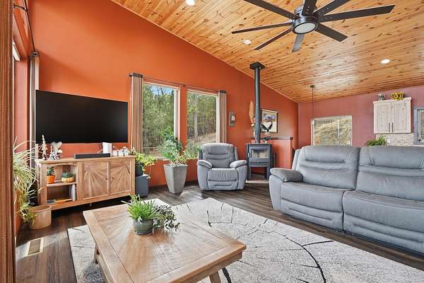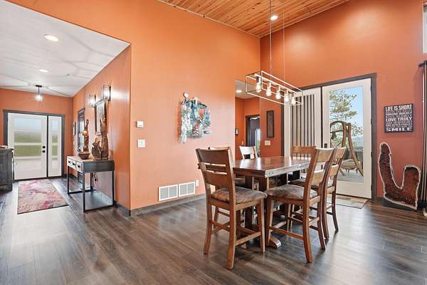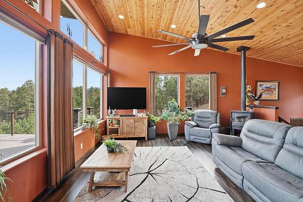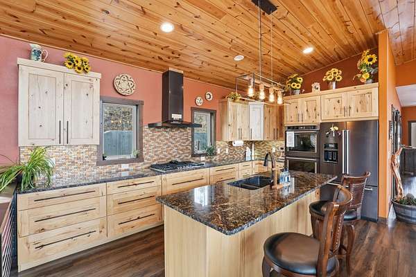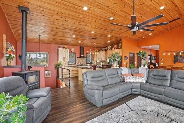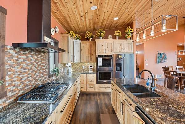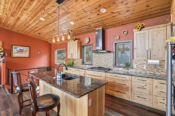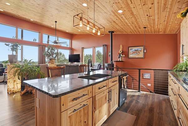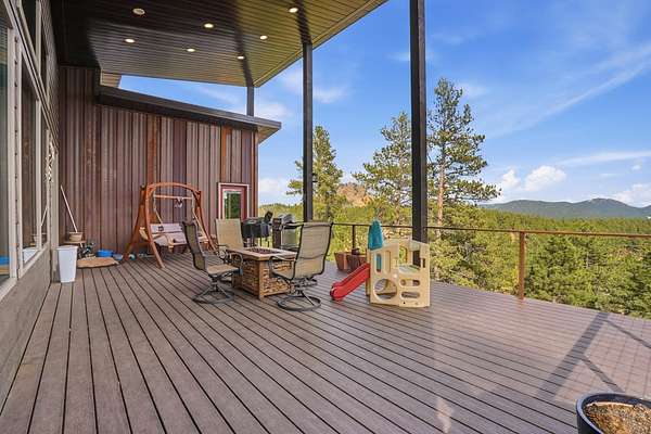 Incredible views surround this newly built modern ranch home, perfectly positioned on 2.65 acres in the heart of the Black Hills. Blending clean architectural lines with a bright, inviting interior, this home offers both style and functionality for everyday living and entertaining. The thoughtfully designed floor plan features 3 bedrooms and 2.5 bathrooms, 34x34 2 car- garage along with a zero-entry main level for easy, stair-free access. A full lower level provides additional flexibility, giving you the option to enjoy the home entirely on one level if desired. At the heart of the home, the open-concept kitchen is anchored by a massive island, modern appliances, and abundant counter space—flowing seamlessly into the dining and living areas. A cozy wood stove adds warmth and charm, creating the perfect space for gathering. Step outside to a massive covered deck, ideal for entertaining or relaxing while taking in the expansive views and surrounding acreage. The lower level also features2 bedroom, full bath and a 32x28 heated and insulated workshop with an overhead garage door—truly a dream space that could easily be converted into a family room, recreation area, or entertainment space. Located just minutes from iconic Black Hills destinations like Mount Rushmore, Crazy Horse Memorial, and Custer State Park, and a 30-minute commute to Rapid city. Listed with Lori Svoboda @ Western Skies Real Estate 605-517-0785