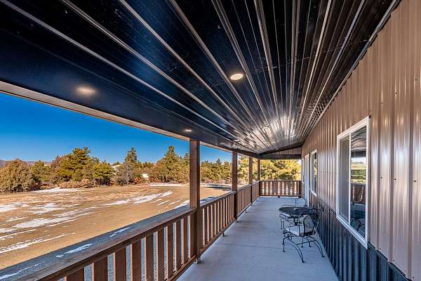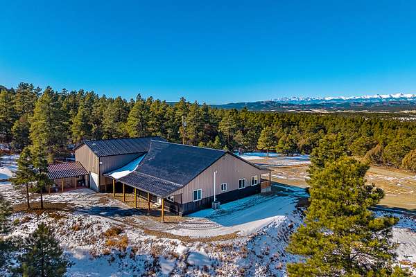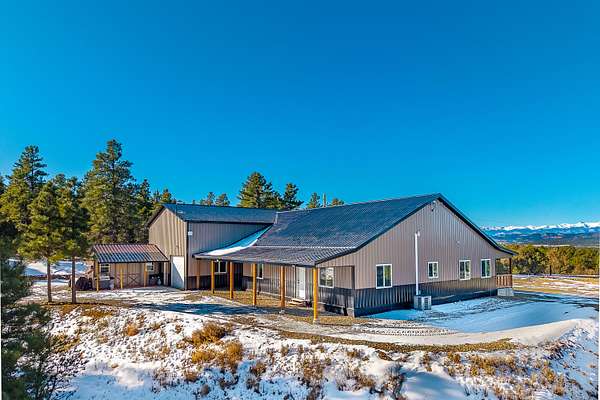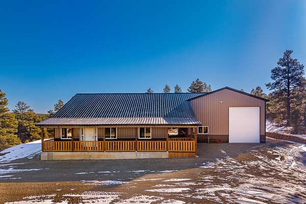 This stunning, new custom-built home offers exceptional craftsmanship at a price point that simply makes sense for savvy buyers seeking quality without compromise. Nestled on 35 acres of diverse Colorado terrain, this three bedroom, two-bathroom home was engineered with meticulous attention to detail. The owners invested in superior construction, featuring heavy-load trusses designed to laugh in the face of whatever Mother Nature decides to throw its way. The open concept layout flows beautifully, anchored by a generous kitchen showcasing custom soft-closing cabinetry, gorgeous Cavatina stone countertops, and gleaming stainless steel appliances. A spacious pantry keeps everything organized while overhead forced air and central cooling maintain year-round comfort. The property includes all furniture and decor, meaning you can skip the moving headaches entirely. Beyond the main residence, a substantial workshop includes an RV garage workshop with 30 amp, 50 amp, 220 amp and awaits the hobbyist or entrepreneur. Complete with power, heat, workbenches, overhead storage, and an attached bunk room with air-conditioning. All this space transforms projects into possibilities. The attached garden shed adds practical convenience. Self-sufficiency seekers will appreciate the existing infrastructure, including a substantial 2,000 gallon cistern, 8500 watt generator-ready setup if electricity happens to go out, and potential for future water catchment. The acreage features a beautiful mix of Ponderosa pines, pinons, cedar, oak brush, and Douglas fir, plus a seasonal pond attracting abundant wildlife. Spectacular mountain views included. A must see property!