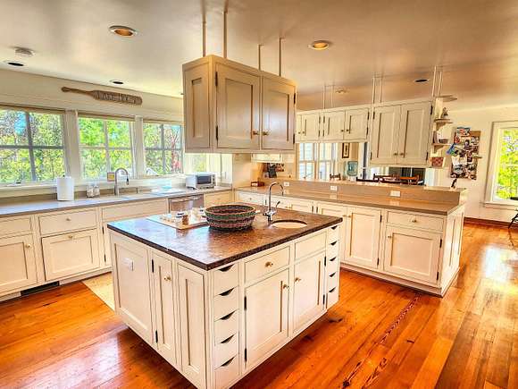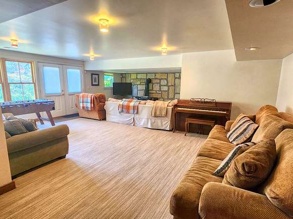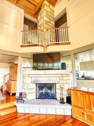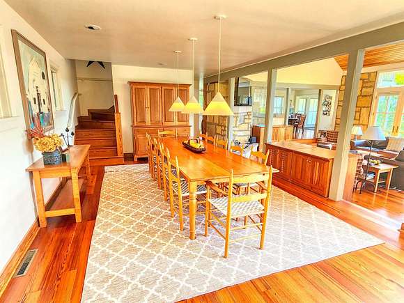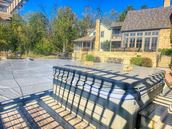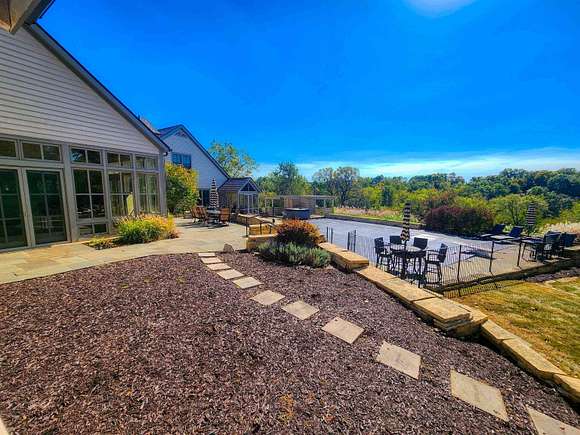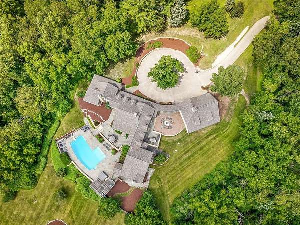 The winding wooded drive brings one to where you want to be. Tucked away on a wonderful lakefront retreat at Lake Carroll! This stunning 7-bedroom, 4.5-bathroom custom-built home sits on 6 acres, offering privacy at the waterfront. As you approach the property via the circular driveway, you'll immediately sense the grandeur and warmth this home exudes. Step inside, and you'll be greeted by a spacious eat-in kitchen that's perfect for gathering with family and friends. The main level great room, with its cozy gas fireplace, invites you to relax and unwind after a day on the lake. Imagine hosting dinner parties in the large dining area, which seamlessly opens to the patio and pool area - ideal for indoor-outdoor entertaining. The main level primary suite is a true sanctuary, featuring a private bath with a soaking tub, a dressing area, and a walk-in closet. You'll love starting your mornings with a cup of coffee on your private screened porch, taking in views of the grounds. For those who love to entertain, the rec room with its second fireplace and pool table provides the perfect setting for game nights. And don't miss the butler's pantry - a dream come true for any host or hostess! Upstairs, six guest bedrooms await, each with its own charm and some boasting private balconies overlooking the expansive grounds. Your guests will have two full baths to share on this level. The lower-level walkout is a versatile space that adapts to your needs. A cozy family room with a wood fireplace sets the stage for movie nights, while three flex spaces offer endless possibilities - perhaps a home gym, an art studio, or a home office? The choice is yours! Outside, the Lake Carroll lifestyle truly comes to life. Dive into your private pool, soak in the hot tub, or simply lounge on the expansive patio while taking in the lake views. With privacy, space and an inviting waterfront, every day feels like a vacation. This property is not just a home; it's a legacy. The 3-stall detached garage provides ample space for your vehicles and lake toys. Don't just dream about the perfect lake life - live it! This Lake Carroll gem is waiting to become the backdrop for your most cherished memories. Come experience the magic of lakefront living in this truly one-of-a-kind home. RECENT UPDATES INCLUDE; NEW ROOF, NEW WELL PUMP, HVAC REPLACED NEW POOL EQUIPMENT, EXTERIOR PAINTED. Ask you agent for additional details. Buyer and or buyer agent to verify all information, sizes, square footage, figures, school zones, taxes, exemptions, and zoning. Sizes and measurements approximate.