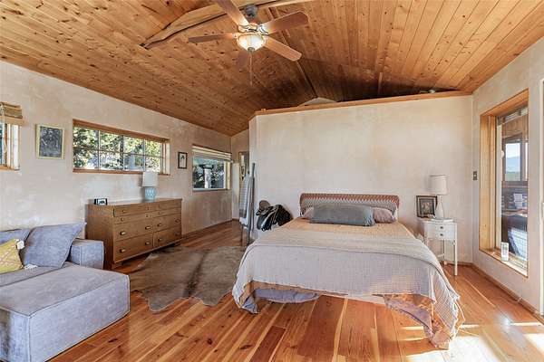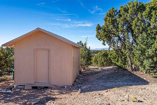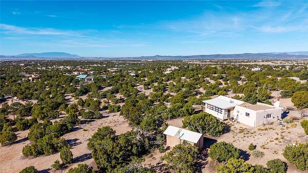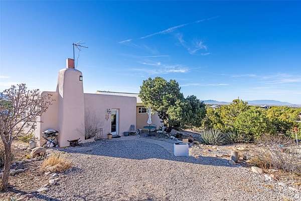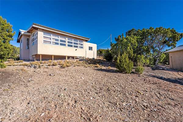 Set on 2.3 acres, this charming 1-bedroom, 1-bathroom home offers privacy, space, and sweeping views. With 1,294 square feet, the property features an open living and dining area with a wood-burning fireplace, creating a warm gathering space. The spacious primary bedroom includes soaring ceilings, wood flooring, a large walk-in closet, and radiant heat for added comfort. Just off the bedroom, a sunroom provides a bright and relaxing space to take in the surrounding landscape, with gorgeous views of the Sangre de Cristo Mountains and Sandia Mountains. The property is being sold with a separately deeded, adjacent lot, offering the opportunity to build, ideal for future development, investment potential, or added privacy. A unique opportunity for those seeking a serene setting with room to expand or personalize. The home is currently occupied- do not enter or drive onto the property without a confirmed appointment.