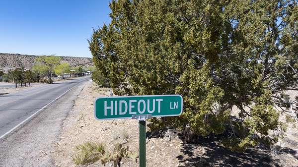 From I-25 and Hwy 165 head East into Placitas approx. 7 miles, turn left onto Camino De Las Huertas, property is on right with a street sign that says, ''Hideout Lane'' (before the Placitas Community Senior Center).