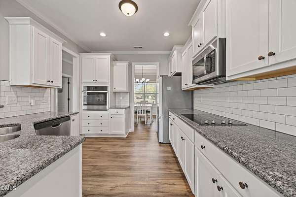 Set on the largest lot in the neighborhood, this one-level ranch offers 3 bedrooms, 2 baths, and 1,694 square feet of well-planned living space in Zebulon, Johnston County. At 24 Carolina Landing Drive, the split-bedroom layout includes a living room with fireplace and built-ins, a separate dining room, and extra crown moulding throughout. The kitchen features granite countertops, a flat cooktop, wall oven, and functional flow for everyday use and entertaining. A separate laundry room adds convenience, and the front-load garage keeps the exterior clean and practical. Outdoor living stands out with both a screened deck area and an open deck area overlooking the expansive 2.53-acre corner lot. Located at the beginning of the neighborhood, the setting offers added space, visibility, and a rare lot size that is hard to find within the community. Quick drive to nearby Zebulon or Flower's Plantation in Clayton for shopping and dining.