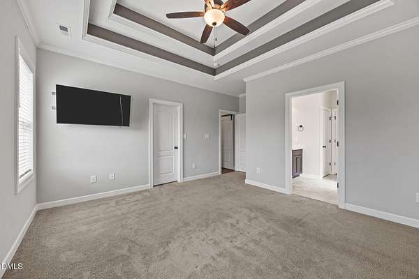 - Bathtub Only, Bathtub/Shower Combination, Built-In Features, Ceiling Fan(s), Crown Molding, Dining L, Double Vanity, Dual Closets, Eat-In Kitchen, Entrance Foyer, Granite Counters, Primary Downstairs, Separate Shower, Smooth Ceilings, Tray Ceiling(s), Walk-In Closet(s)
