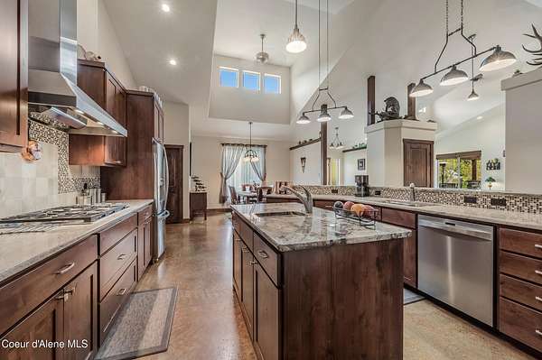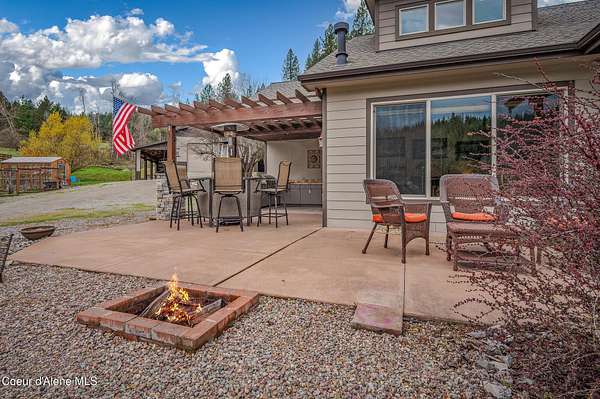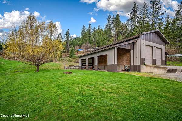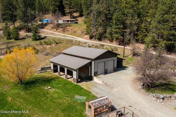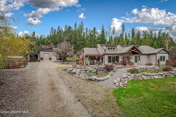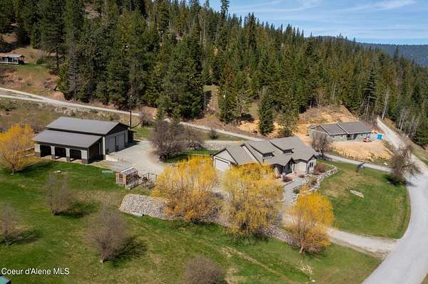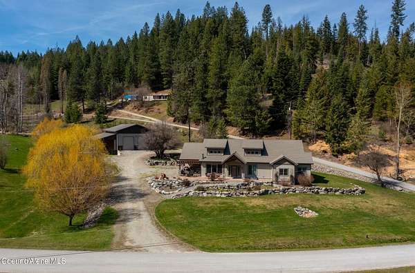 Set on 1.87 private acres in the quiet community of Kingston, this custom-built single-level home captures everything buyers seek in a North Idaho property--privacy, usability, and close proximity to Coeur d'Alene, shopping, and year-round recreation. Tucked along county-maintained dead-end roads, the setting offers a peaceful, low-traffic environment while remaining just minutes to I-90 for an easy commute. Surrounded by some of North Idaho's most sought-after outdoor destinations, you're moments from the Coeur d'Alene River, Chain Lakes, and the Trail of the Coeur d'Alenes, with Silver Mountain Resort and Lookout Pass nearby for skiing, biking, and year-round adventure. Whether it's boating, fishing, ATV riding, or simply enjoying the natural beauty of the area, this location delivers the lifestyle people move here for. The thoughtfully designed 3-bedroom, 2.5-bath home offers 2,390 square feet of open concept living with vaulted ceilings, radiant in-floor heat, and abundant natural light. The kitchen is both functional and inviting, featuring custom cabinetry, granite surfaces, and a spacious layout ideal for gathering and entertaining. Designed with accessibility in mind, the single-level floor plan provides comfort and ease throughout. Outdoor living is a true highlight, with a covered kitchen and dining area perfect for entertaining, along with a firepit, water feature, raised garden beds, and greenhouse--creating a setting that's equally suited for hosting or quiet evenings at home. The impressive 36x52 shop expands the property's versatility with a large main workspace, loft, and infrastructure for future living quarters, while multiple lean-tos and full RV hookups provide ample space for equipment, recreation, and storage. This is more than a home--it's a North Idaho lifestyle property offering space, flexibility, and access to everything that makes this region so desirable.