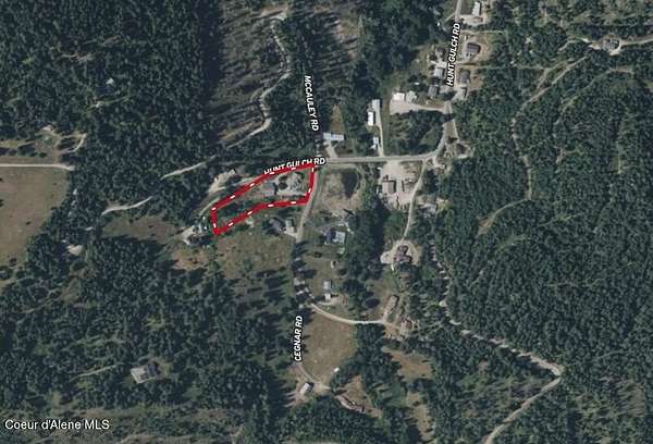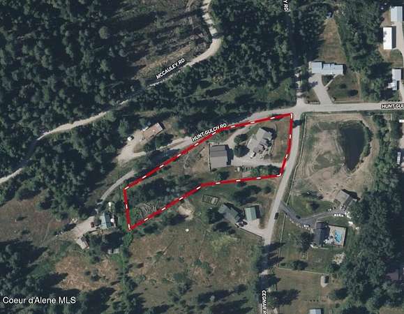 I-90 Kingston Exit #43, South on Cd'A River Rd, West on Silver Valley Rd, South on Hunt Gulch Rd to property on the corner of Hunt Gulch Rd & Cegnar Rd