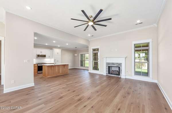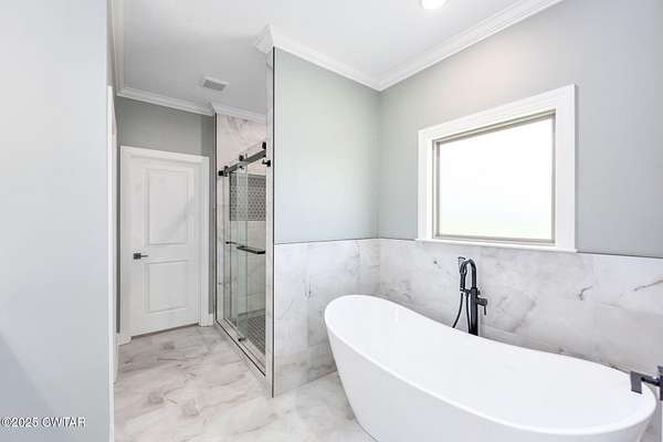 - Ceiling Fan(s), Ceramic Tile Shower, Crown Molding, Double Vanity, Granite Counters, Kitchen Island, Open Floorplan, Soaking Tub, Tray Ceiling(s)