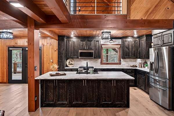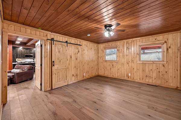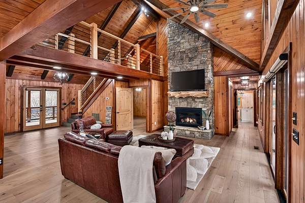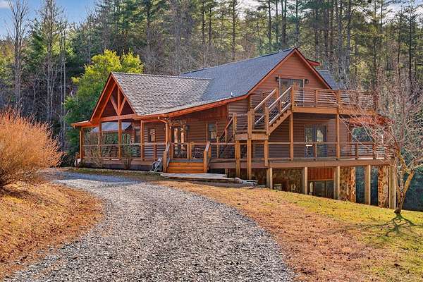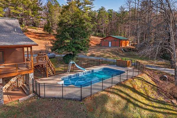 Luxury Aksa Adventure Area Cabin Estate perfect for a family and/or income producing potential with numerous recent upgrades just steps from the Toccoa River, BMT trail, Iron Bridge Cafe and Tubing. Discover the perfect blend of rustic charm and modern sophistication on this 3.28-acre private retreat. This 4BR/3BA cabin features a recent remodel and finished basement, whole house generator, farm sink, large kitchen island, updated deck and elegant copper gutters. Drink your coffee or hot cocoa near the cozy outdoor fireplace while enjoying the tranquility of the private, fountain-accented pond or grab a book and sit on the expansive upper deck while listening to the peaceful flow of the Toccoa River. Enjoy a dip in the pool surrounded by mix of a lush pasture and wooded area, home to many deer and turkey. The property's standout feature is the massive, barn (appr 1200 sq ft)--ready for a guest apartment, short-term rental, garage or ultimate workshop complete with a chicken coop. Every detail has been handled! you will be spoiled with a newly graveled circular drive, General whole house generator and tankless water heater. The home is fully prepped for its next chapter, featuring a recently maintained septic system and full propane reserves.