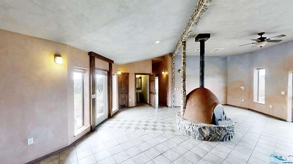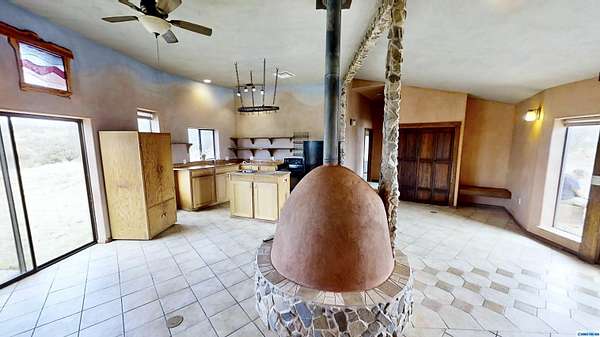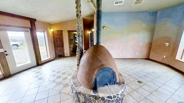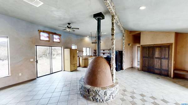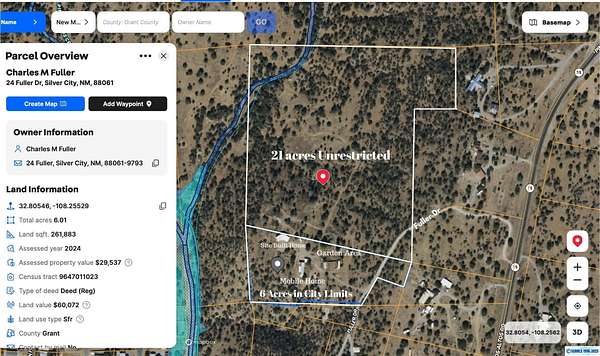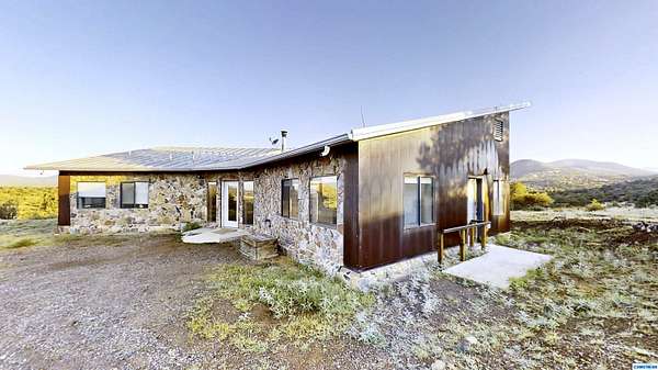 Discover 28.36 acres with endless possibilities just off Hwy 15 in Pinos Altos. With 21 unrestricted acres and 1/3 acres within city limits, this rare property is ideal for developers, farmers, or those seeking a private retreat. Included are 2.3 acres of valuable water rights for irrigation with a diversion amount of 6.21 acre-feet per annum (File No. M-2544). The custom home, built in 2015, showcases efficiency and craftsmanship: double 2x4 walls with 8" blown-in cellulose insulation, 10-12" roof insulation, stone and CorTen siding, and a standing-seam Galvalume roof. Modern features include radiant floor heating, a fully permitted 60' x 60' evapotranspiration bed with septic, and a 40-gal water heater. Comfort is enhanced by an Aerocool 6800 CFM cooler and Bali Shades. Interior finishes shine with American Clay walls, custom cedar countertops, and alligator juniper accents from the land itself-a unique opportunity for development, farming, or serene country living.