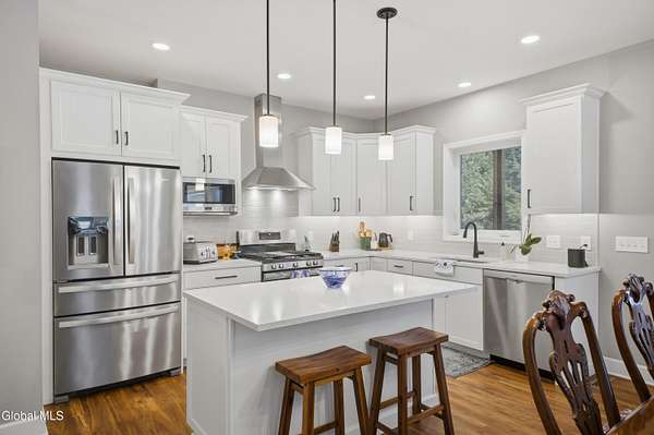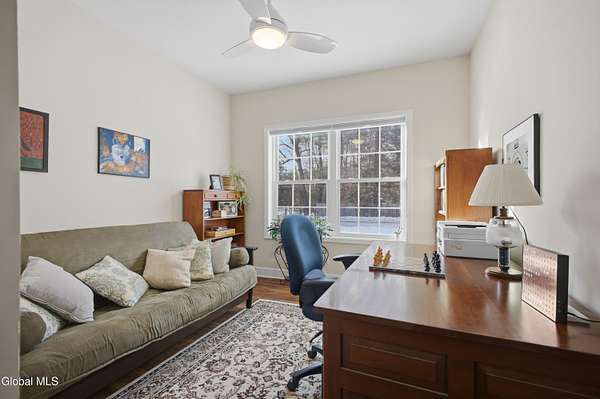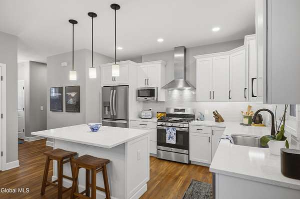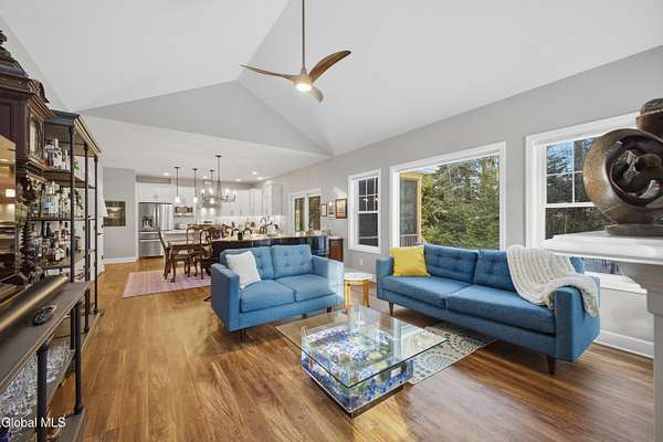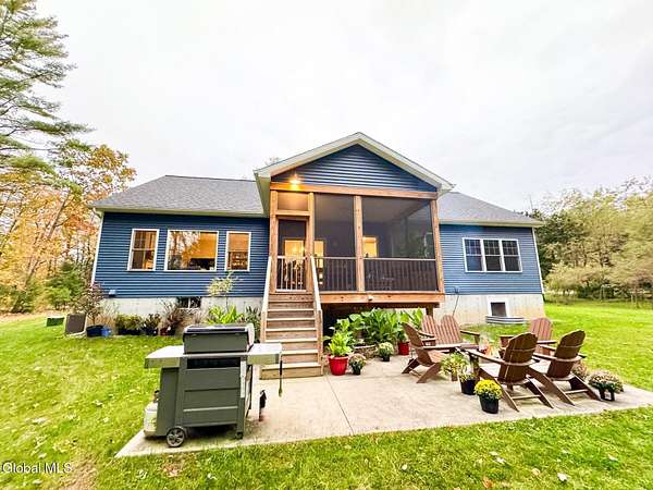 Nearly-New Custom-Built Ranch on Private Greenfield Setting just Five Miles from Broadway in Saratoga and Saratoga School District. This sparkling five-year-young custom ranch by Kodiak Construction features an open, vaulted great room, convenient one-floor living, plus the potential to double its space in the future by finishing the full 9' tall basement which has an open staircase from the foyer. The views of the surrounding trees are visible throughout the home, but are most enjoyed from the generous screened porch and patio. Highlights include: Crisp white kitchen with quartz countertops, tile backsplash, upgraded appliances and pantry, vaulted primary suite with double sinks and walk-in shower, FULL HOUSE BACKUP GENERATOR, 220 outlet in garage to add car charger, upgraded luxe vinyl floors throughout, upgraded vinyl windows, screened porch and patio! Best of all your privacy is ensured! THIS SALE INCLUDES the vacant parcel adjacent to the home too: 32 Grange Road for a total of 2.48 acres and 502' of road frontage! Easy one-story living with no HOA or deed restrictions!