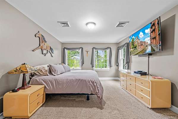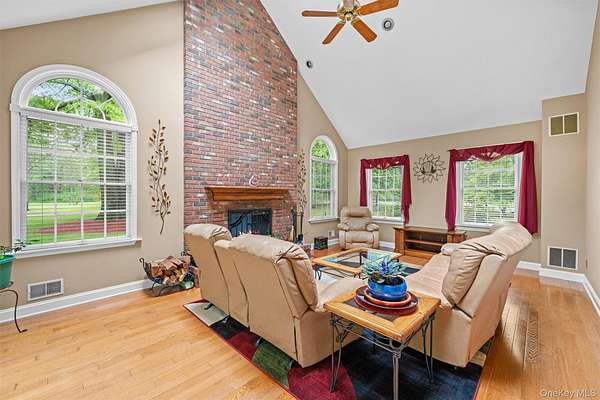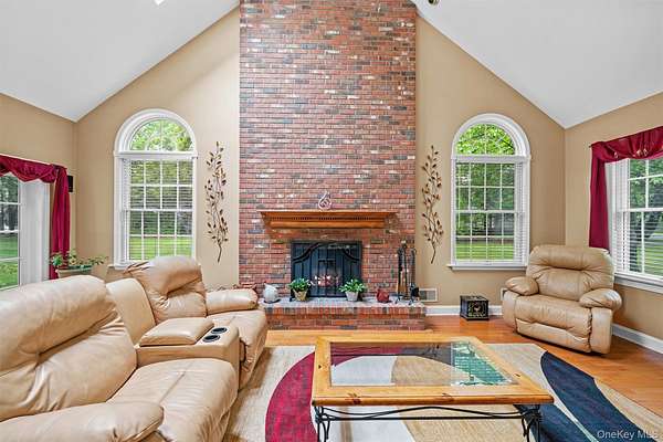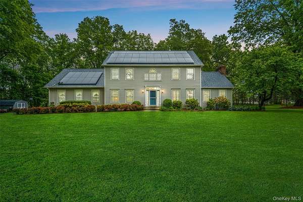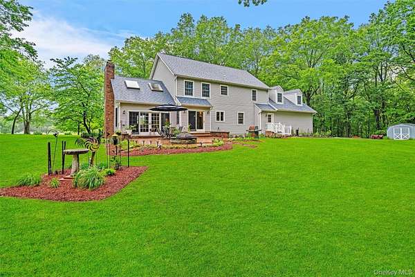 If peace, quiet and privacy are what you desire, look no further than this meticulously kept 3.74-acre property located at the end of a quiet cul-de-sac with no thru traffic. Landscaped gardens, mature shade trees, a stamped concrete patio with fire pit (2017) & an abundant wildlife complete this backyard oasis. Great for entertaining or just relaxing and taking in the morning sun rise. The center hall colonial home boasts 3176 sqft. of living space. 4 bedrooms, 3 full bathrooms, and 2 finished rooms with closets over the garage; These are perfect for a home office, craft room, dressing room or exercise room. The primary bedroom has a private bath and a large walk-in closet. The lower level has a gorgeous hardwood floor entry way with a coat closet, great room with hardwood floors, soaring fireplace and sky lights; a very spacious eat in kitchen, formal living room, a hardwood floor formal dining room, a mudroom / laundry room with access to both the garage and backyard plus a full bath. The home boasts closets galore, a dedicated pantry closet, central vacuum and 2 separate staircases that bring you up/downstairs. One from the entry way and one from the laundry room. There is a full, unfinished basement (also with 2 separate staircases) for easy entry and exit. Large windows and sliders allow ample light to enter, making even a gloomy day bright. There is no wasted space in this home! The attached oversized garage and shed increase your storage ability. The home is less than 7 minutes from all three Wallkill schools. Impeccably maintained and ready to move in, this home combines timeless appeal with modern conveniences. Solar panels were installed in 2023 and are owned and paid for, saving money on the electric bill. New oil tank installed 2025, 2021 new garage doors and openers, 2022 new roof and gutters fitted with leaf guards with 25-year warranty, 2024 central ac units serviced, heating and septic systems are maintained annually. Don't miss this rare opportunity to make this exceptional property your own.