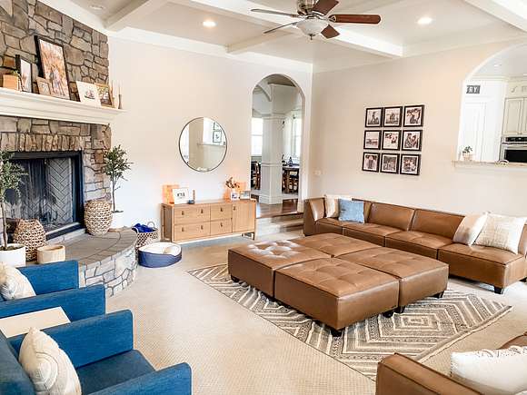 In addition to the 6 bedrooms, each with a walk-in closet, this stunning home features a huge chef's kitchen with double ovens and double dishwashers, plus a massive walk-in pantry, a cozy wood-burning fireplace, a theater/flex room, a home gym, a game room, two laundry rooms (downstairs/upstairs), a central vacuum, an outdoor kitchen, a built-in trampoline, and a saltwater pool/spa with a slide and diving board. Welcome home to your ultimate family fun house, and entertainers delight!