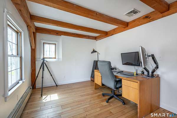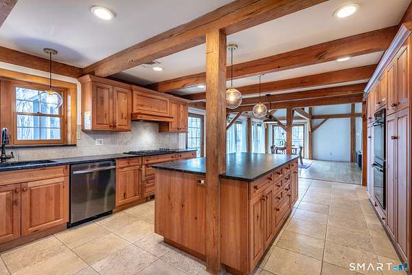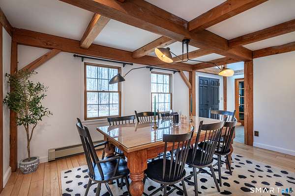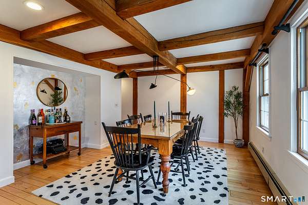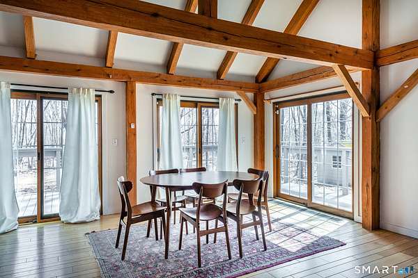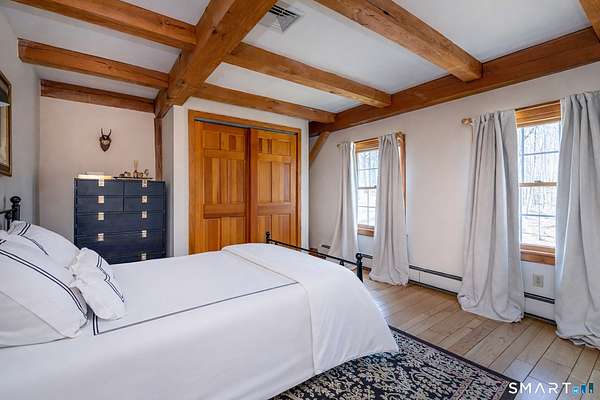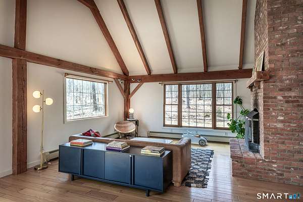 Tucked away in one of Roxbury's most desirable neighborhoods, this 4-bedroom, 2.5-bath Colonial sits at the end of a quiet dead-end road, offering exceptional privacy and a peaceful setting. This beautifully updated Post & Beam home blends timeless craftsmanship with modern amenities, featuring warm architectural details, exposed beams, and thoughtfully designed living spaces. The flexible layout includes a private in-law or studio space, ideal for guests, extended family, or a home office. Set on a serene, wooded 3-acre lot with mature landscaping, the property provides a tranquil retreat perfect for relaxing or entertaining. Despite its secluded feel, it's a short 15 minutes drive from fine-dining, shopping, and easy access to I-84, and ideally located just over 90 minutes to NYC and approximately 2 hours 20 minutes to Boston, offering both convenience and comfort in a truly special location.