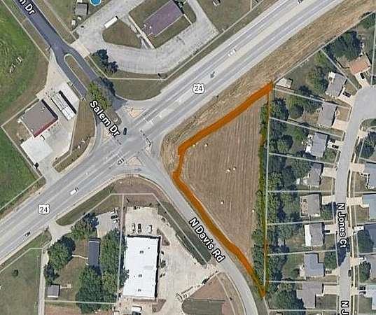 Est $1,445/mo1.2 acres plus or minus. Triangle shaped corner lot located on SE corner of 24 Hwy and Davis Rd- Undeveloped there are no utilities on the property. Good visibility and zoned C-1. Call for more information